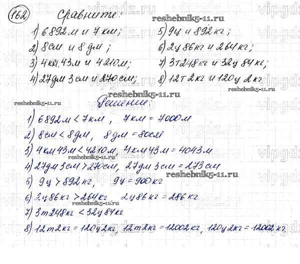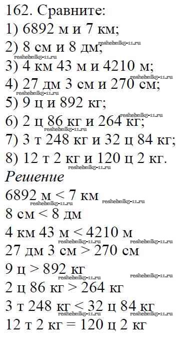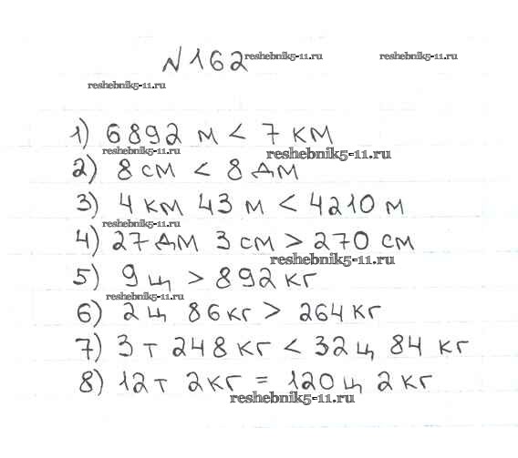 Готовая домашняя работа с ответами по Математике за 5 класс Мерзляк, Полонский, Якир Учебник Алгоритм успеха Вентана-граф 2016 ФГОС - §6. Сравнение натуральных чисел 162