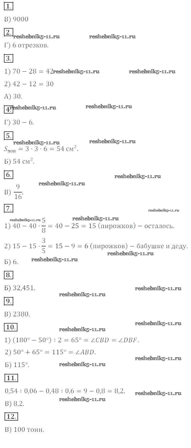 Готовая домашняя работа с ответами по Математике за 5 класс Мерзляк, Полонский, Якир Учебник Алгоритм успеха Вентана-граф 2016 ФГОС - Итоговые задания в тестовой форме. Варианты вариант 2