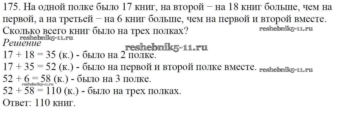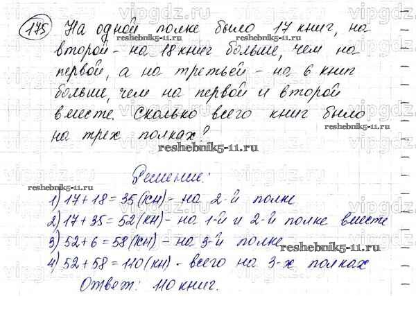 Готовая домашняя работа с ответами по Математике за 5 класс Мерзляк, Полонский, Якир Учебник Алгоритм успеха Вентана-граф 2016 ФГОС - § 7. Сложение натуральных чисел. Свойства сложения 175