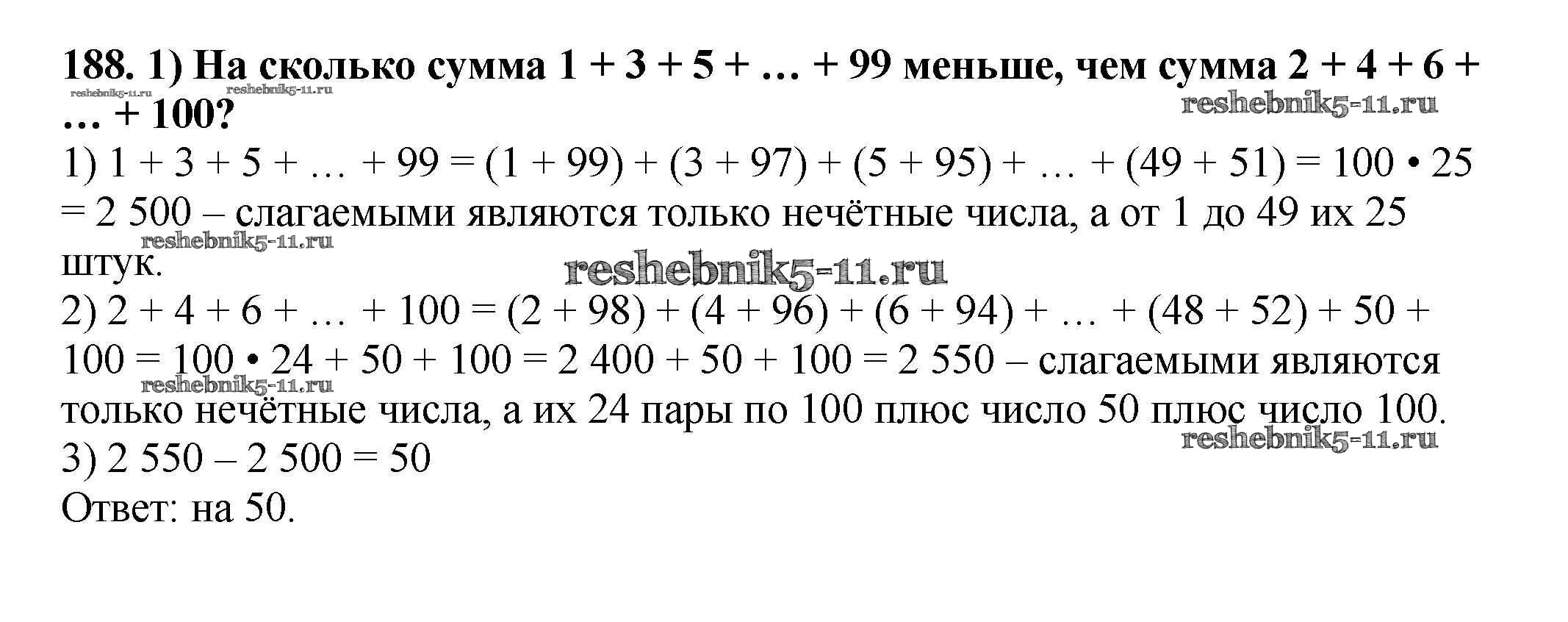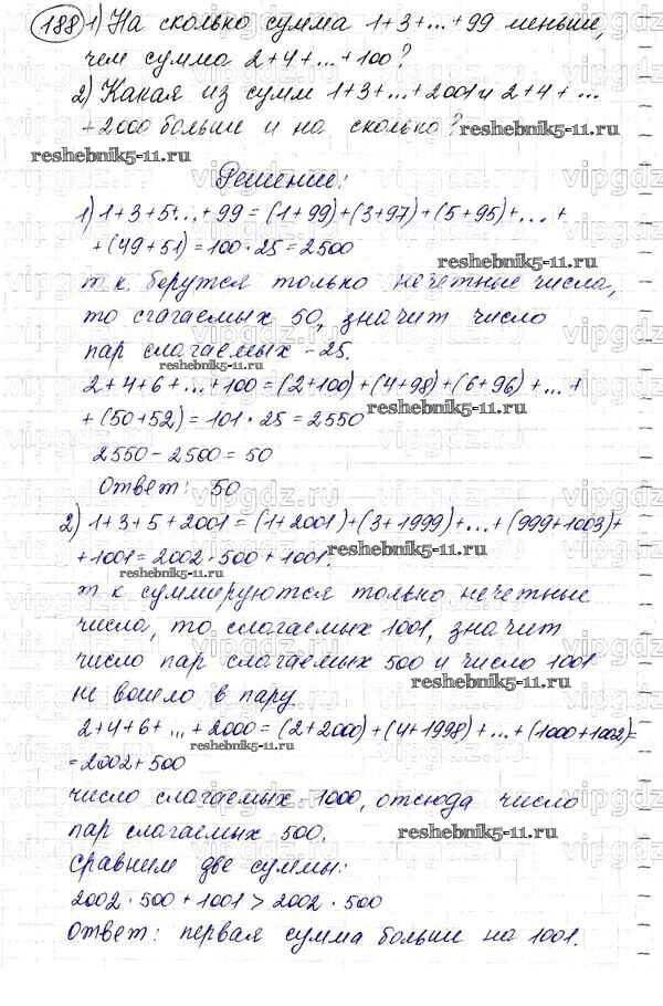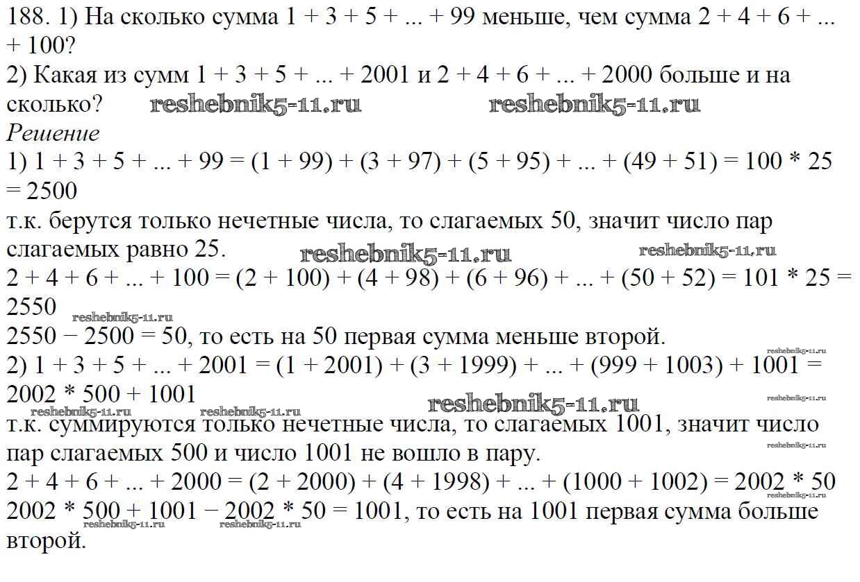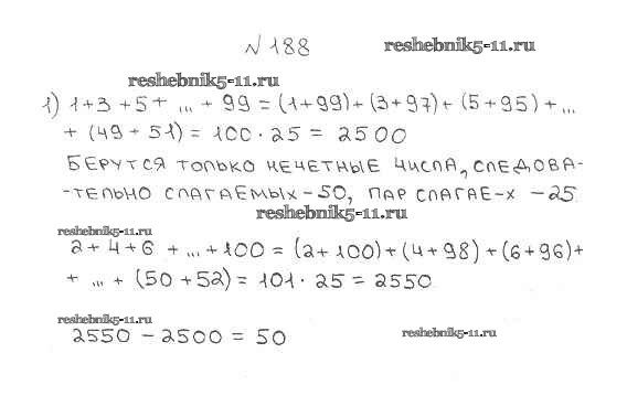 Готовая домашняя работа с ответами по Математике за 5 класс Мерзляк, Полонский, Якир Учебник Алгоритм успеха Вентана-граф 2016 ФГОС - § 7. Сложение натуральных чисел. Свойства сложения 188