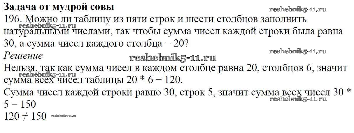 Готовая домашняя работа с ответами по Математике за 5 класс Мерзляк, Полонский, Якир Учебник Алгоритм успеха Вентана-граф 2016 ФГОС - § 7. Сложение натуральных чисел. Свойства сложения 196