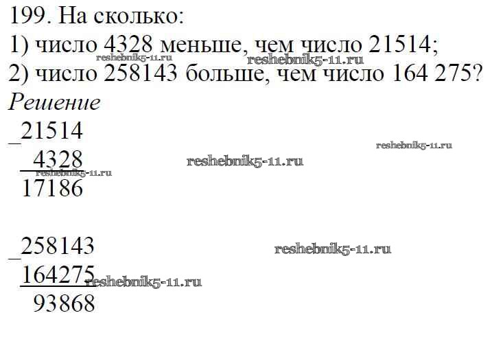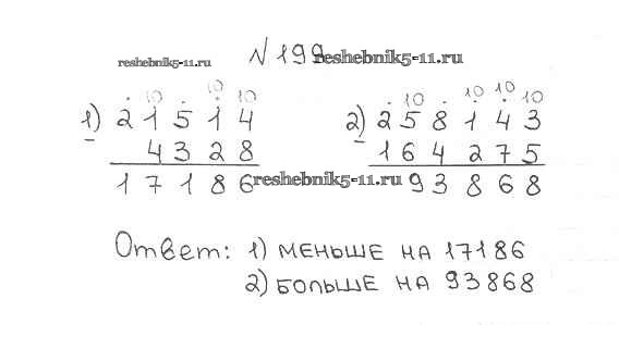 Готовая домашняя работа с ответами по Математике за 5 класс Мерзляк, Полонский, Якир Учебник Алгоритм успеха Вентана-граф 2016 ФГОС - §8. Вычитание натуральных чисел 199
