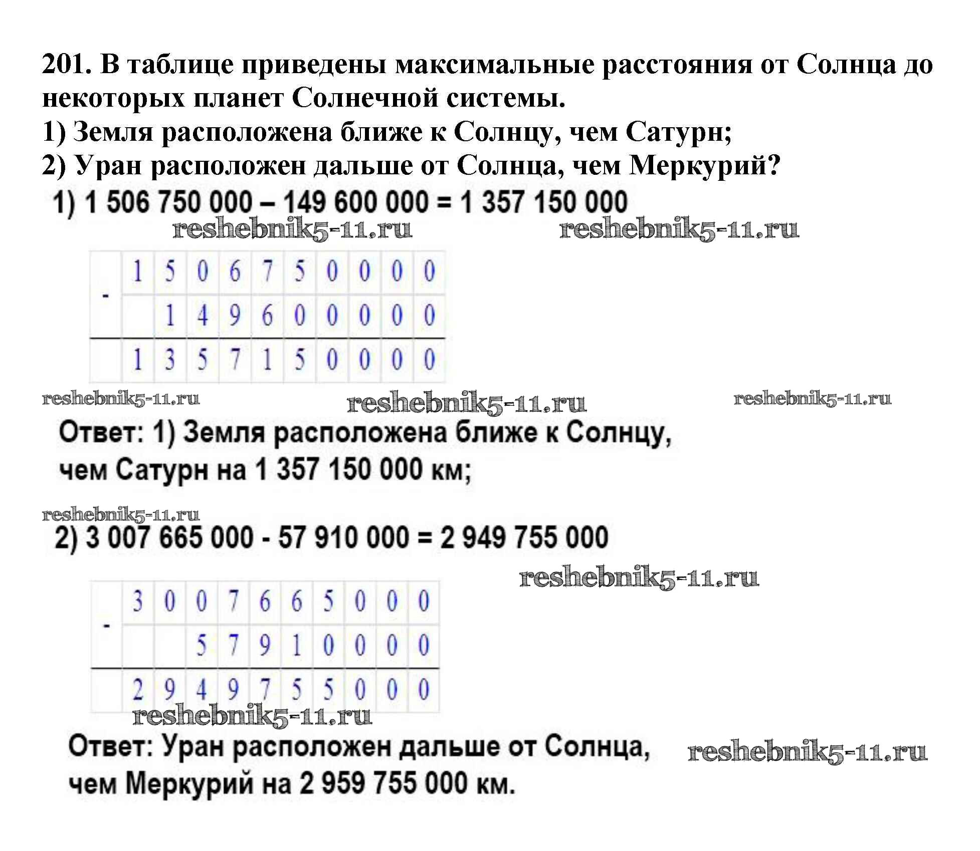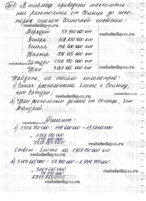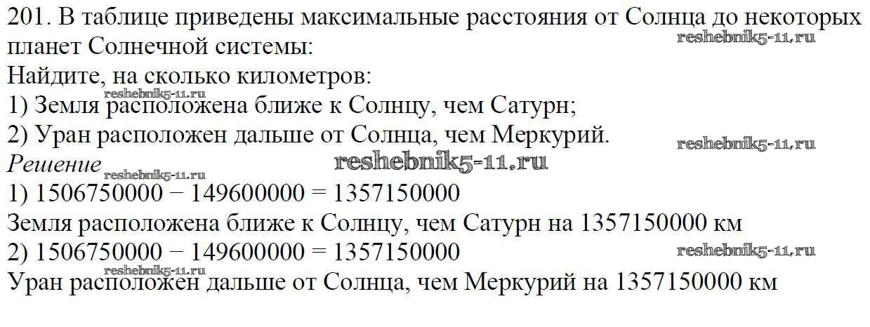 Готовая домашняя работа с ответами по Математике за 5 класс Мерзляк, Полонский, Якир Учебник Алгоритм успеха Вентана-граф 2016 ФГОС - §8. Вычитание натуральных чисел 201