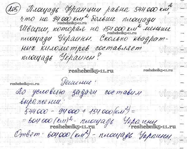 Готовая домашняя работа с ответами по Математике за 5 класс Мерзляк, Полонский, Якир Учебник Алгоритм успеха Вентана-граф 2016 ФГОС - §8. Вычитание натуральных чисел 205