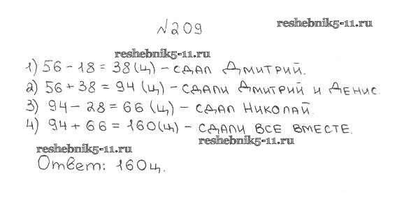 Готовая домашняя работа с ответами по Математике за 5 класс Мерзляк, Полонский, Якир Учебник Алгоритм успеха Вентана-граф 2016 ФГОС - §8. Вычитание натуральных чисел 209