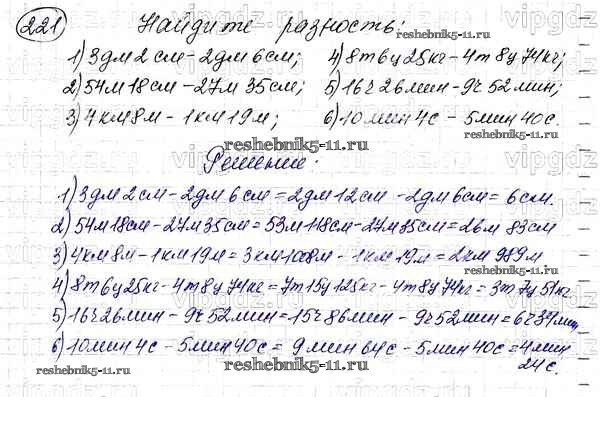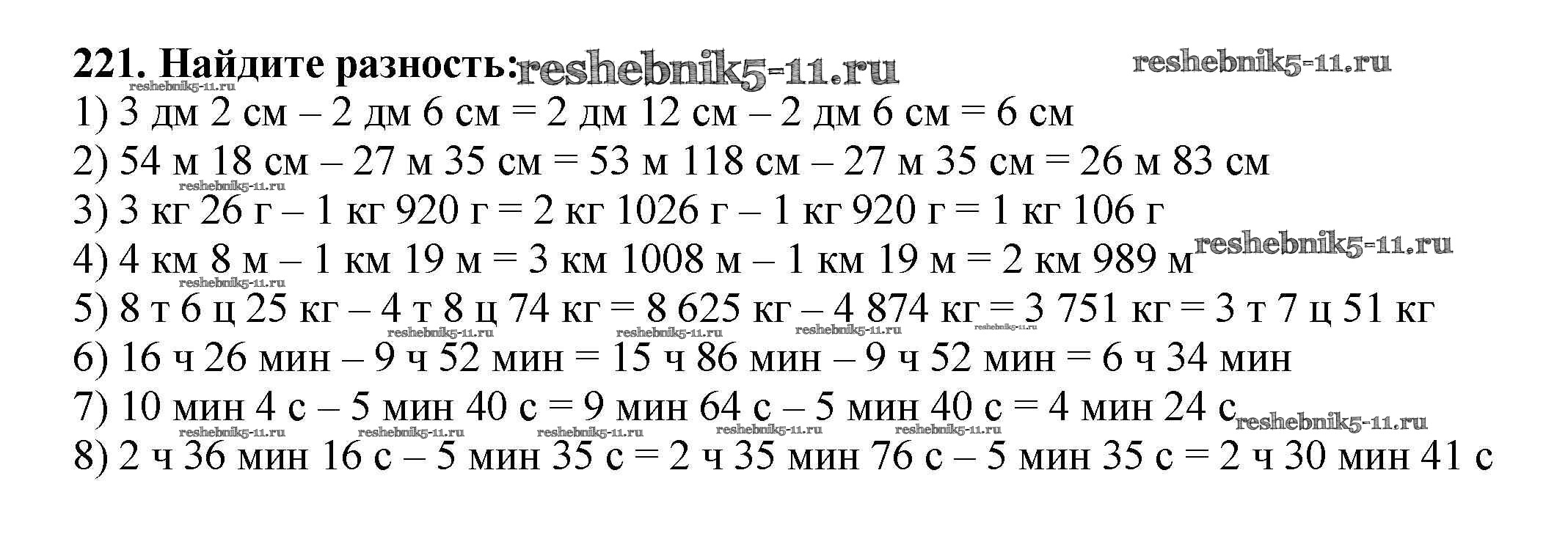 Готовая домашняя работа с ответами по Математике за 5 класс Мерзляк, Полонский, Якир Учебник Алгоритм успеха Вентана-граф 2016 ФГОС - §8. Вычитание натуральных чисел 221