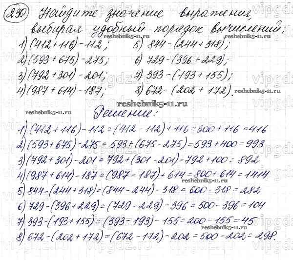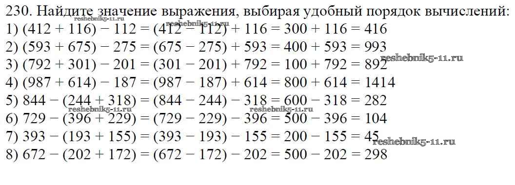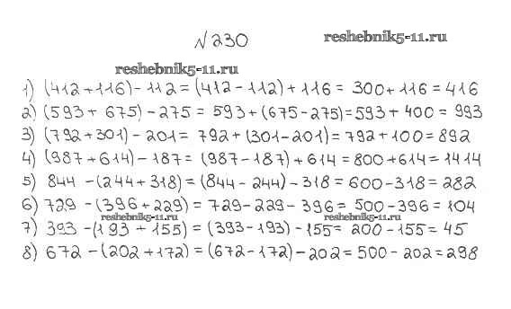 Готовая домашняя работа с ответами по Математике за 5 класс Мерзляк, Полонский, Якир Учебник Алгоритм успеха Вентана-граф 2016 ФГОС - §8. Вычитание натуральных чисел 230