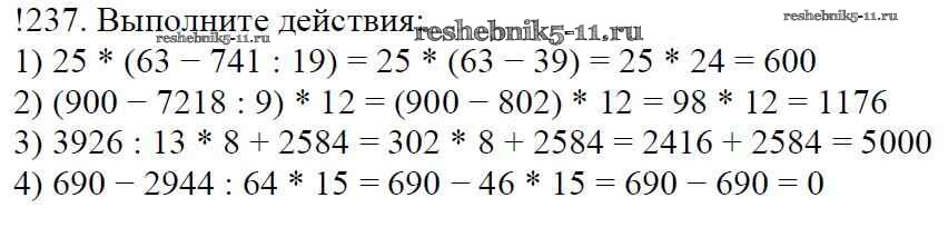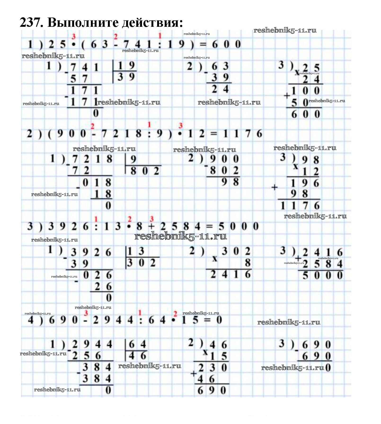 Готовая домашняя работа с ответами по Математике за 5 класс Мерзляк, Полонский, Якир Учебник Алгоритм успеха Вентана-граф 2016 ФГОС - §8. Вычитание натуральных чисел 237