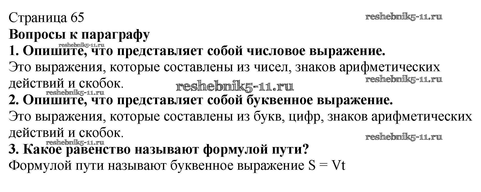 Готовая домашняя работа с ответами по Математике за 5 класс Мерзляк, Полонский, Якир Учебник Алгоритм успеха Вентана-граф 2016 ФГОС - Вопросы (страница 65) страница 65