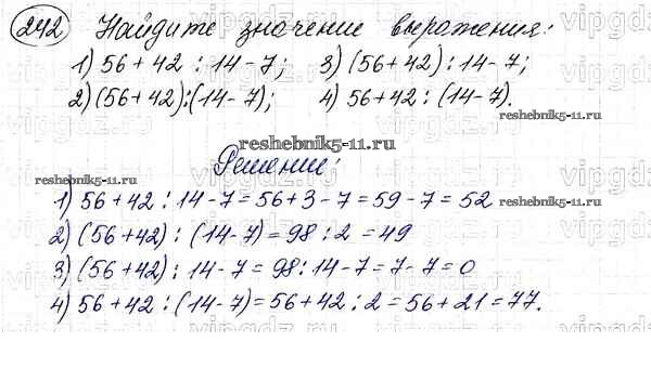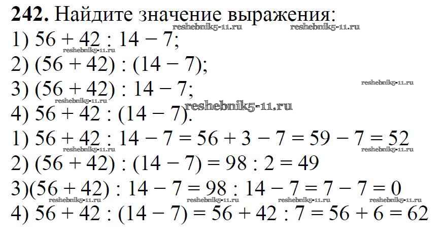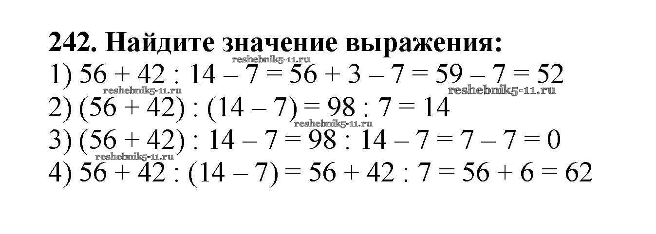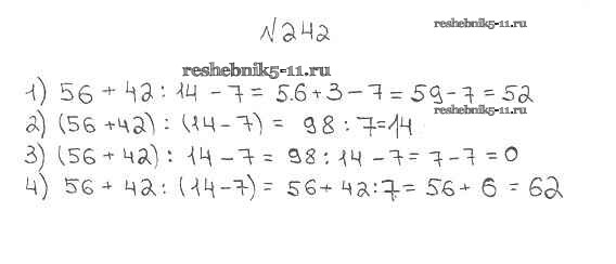 Готовая домашняя работа с ответами по Математике за 5 класс Мерзляк, Полонский, Якир Учебник Алгоритм успеха Вентана-граф 2016 ФГОС - §9. Числовые и буквенные выражения. Формулы 242