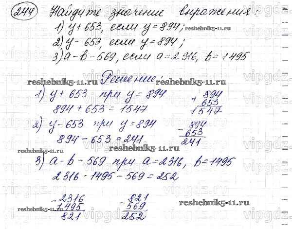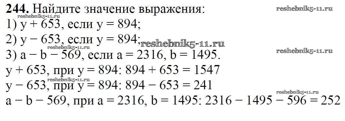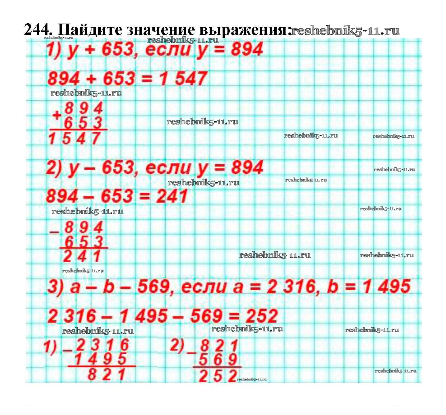 Готовая домашняя работа с ответами по Математике за 5 класс Мерзляк, Полонский, Якир Учебник Алгоритм успеха Вентана-граф 2016 ФГОС - §9. Числовые и буквенные выражения. Формулы 244