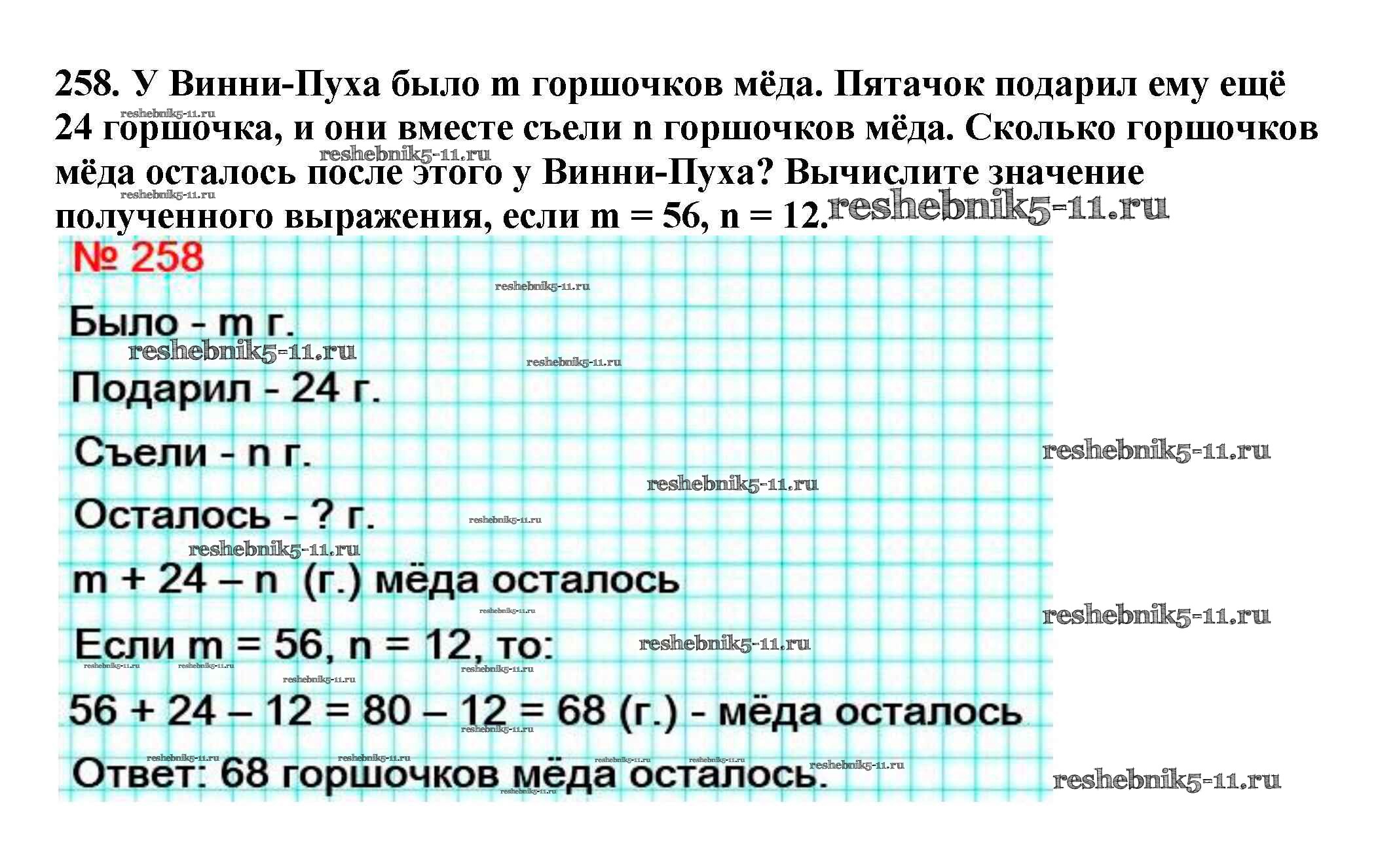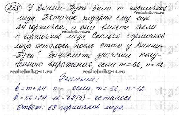 Готовая домашняя работа с ответами по Математике за 5 класс Мерзляк, Полонский, Якир Учебник Алгоритм успеха Вентана-граф 2016 ФГОС - §9. Числовые и буквенные выражения. Формулы 258