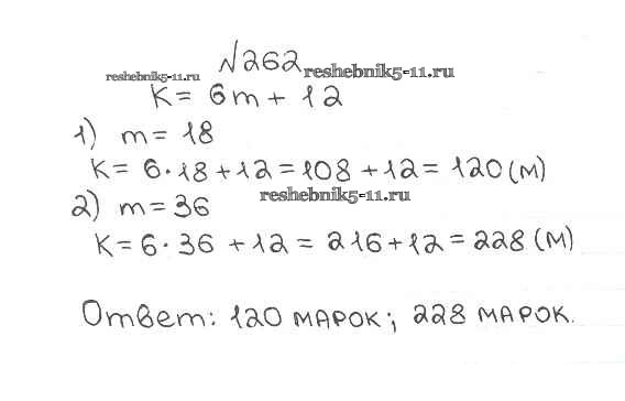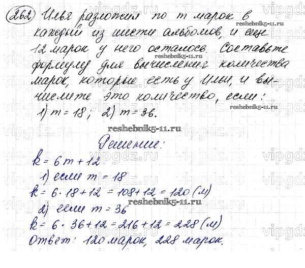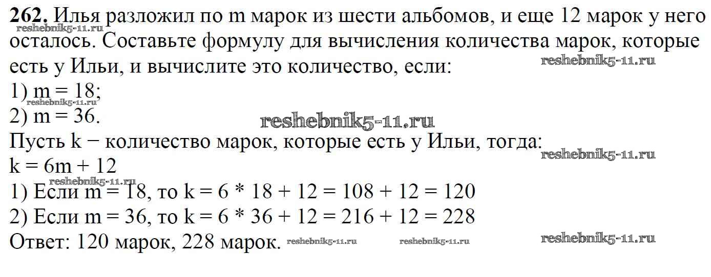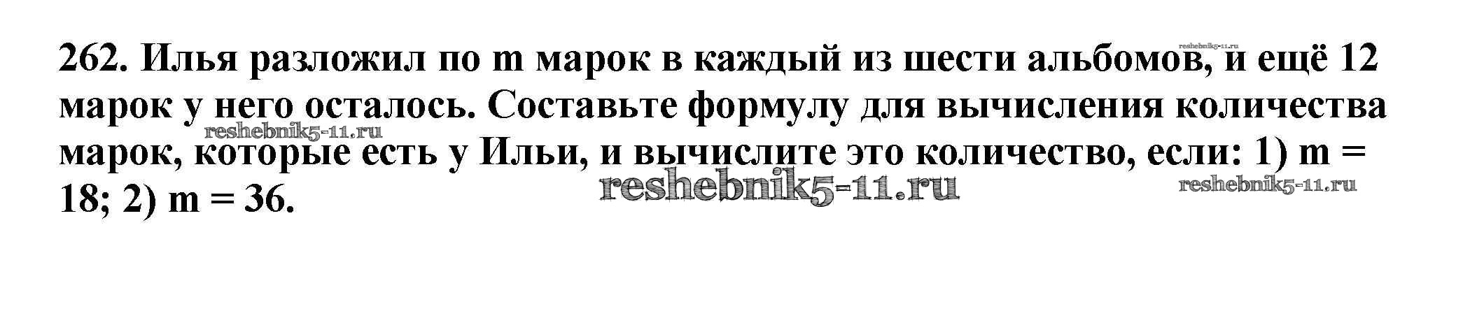 Готовая домашняя работа с ответами по Математике за 5 класс Мерзляк, Полонский, Якир Учебник Алгоритм успеха Вентана-граф 2016 ФГОС - §9. Числовые и буквенные выражения. Формулы 262