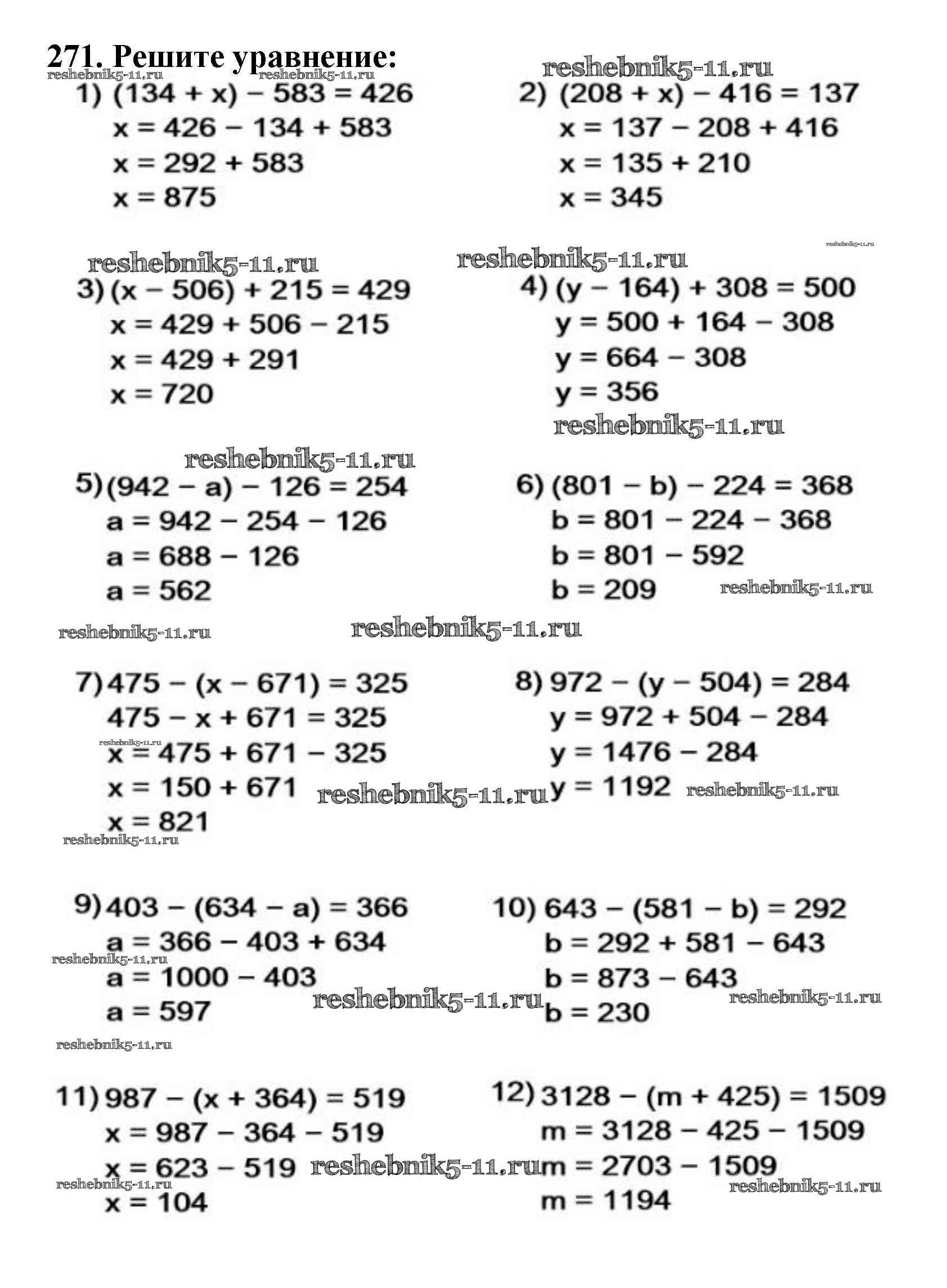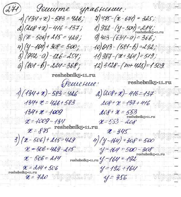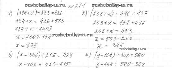 Готовая домашняя работа с ответами по Математике за 5 класс Мерзляк, Полонский, Якир Учебник Алгоритм успеха Вентана-граф 2016 ФГОС - §10. Уравнение 271