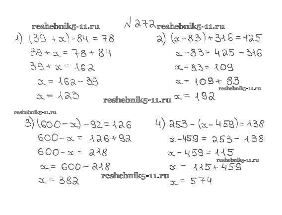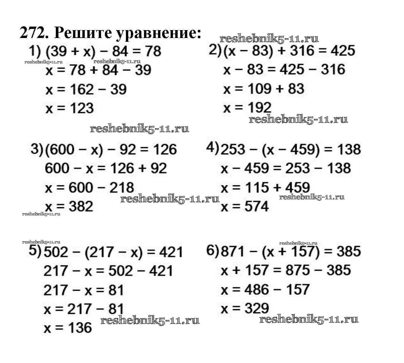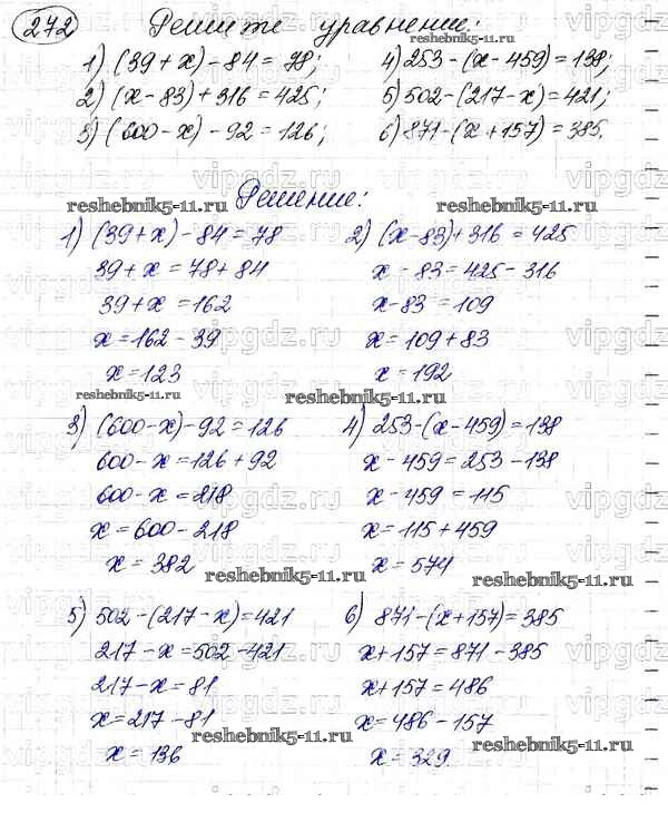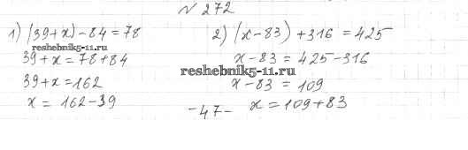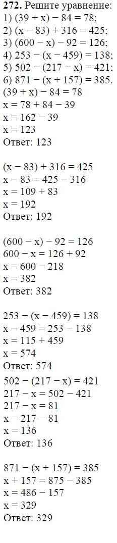 Готовая домашняя работа с ответами по Математике за 5 класс Мерзляк, Полонский, Якир Учебник Алгоритм успеха Вентана-граф 2016 ФГОС - §10. Уравнение 272