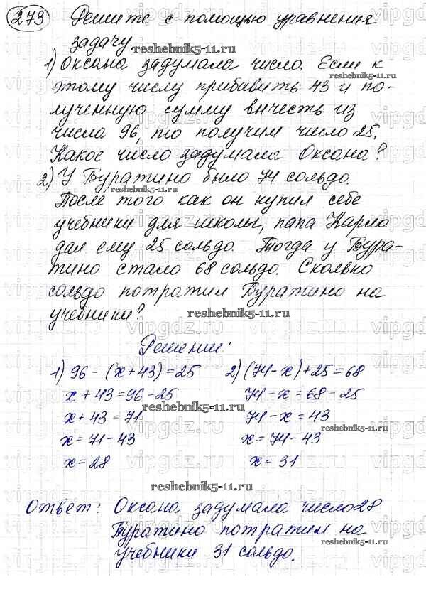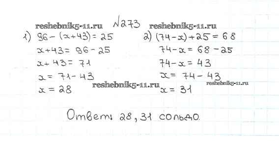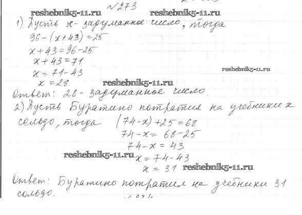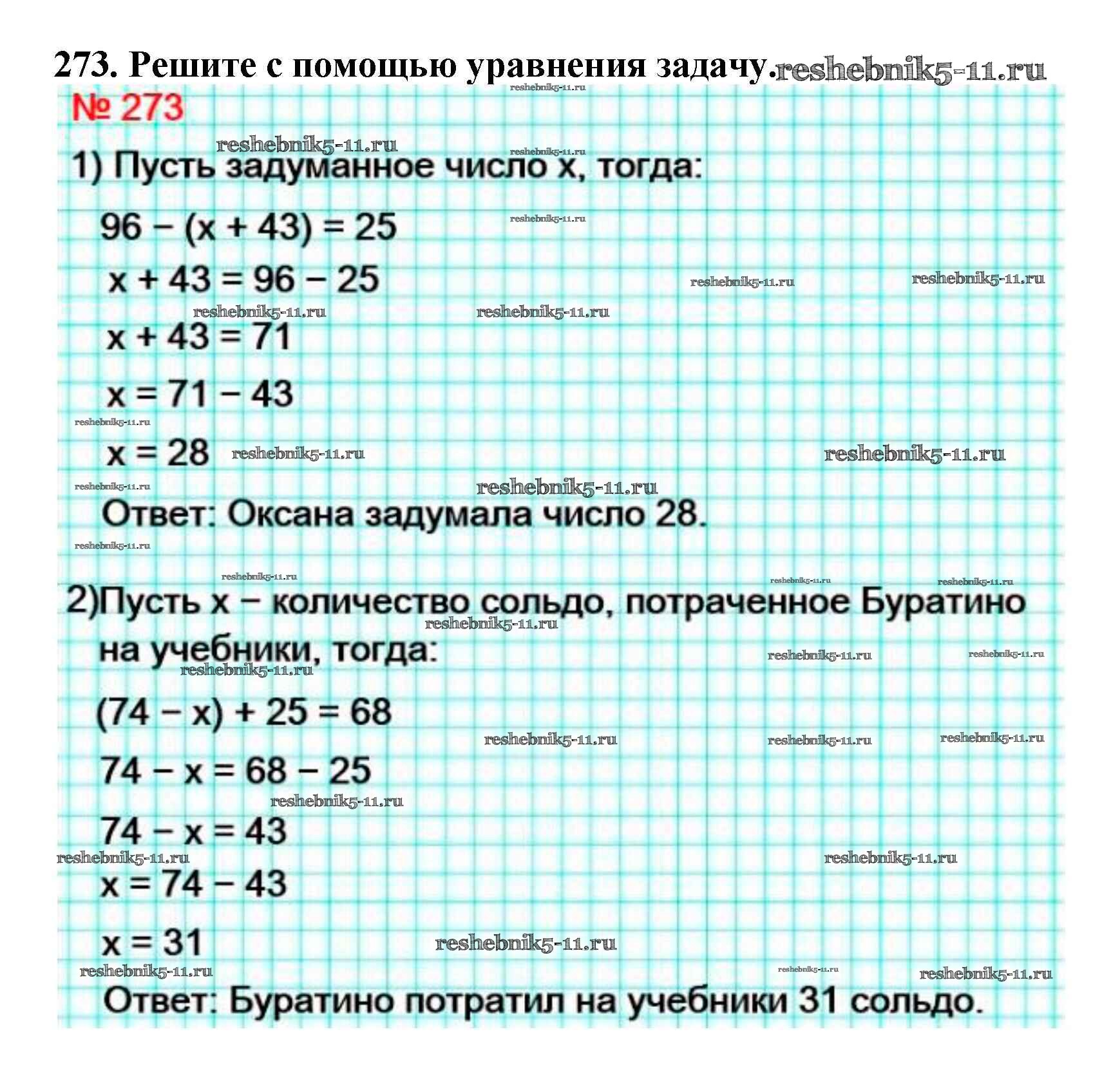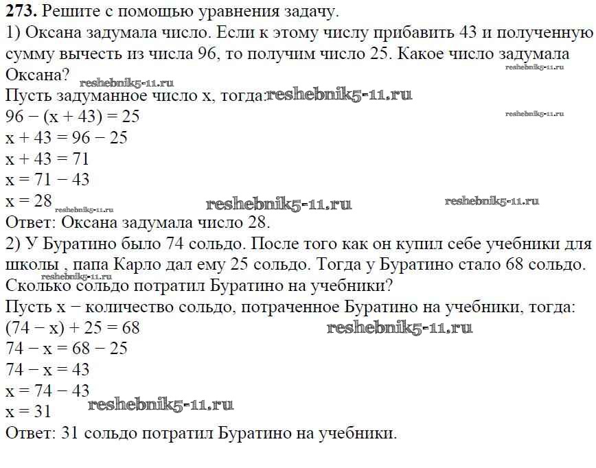 Готовая домашняя работа с ответами по Математике за 5 класс Мерзляк, Полонский, Якир Учебник Алгоритм успеха Вентана-граф 2016 ФГОС - §10. Уравнение 273