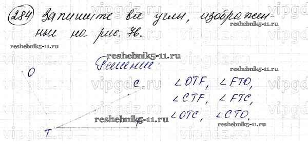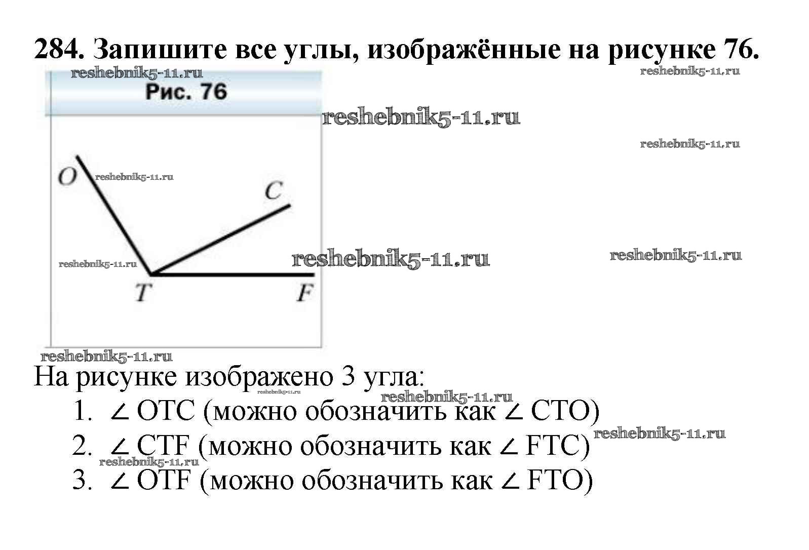 Готовая домашняя работа с ответами по Математике за 5 класс Мерзляк, Полонский, Якир Учебник Алгоритм успеха Вентана-граф 2016 ФГОС - §11. Угол. Обозначение углов 284