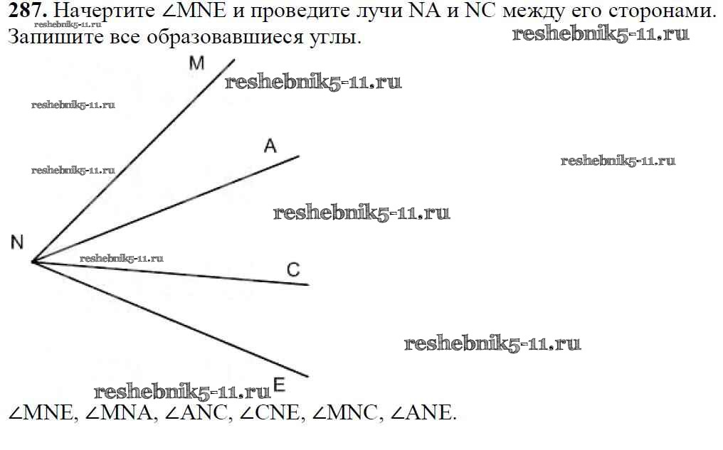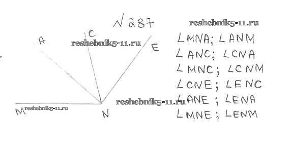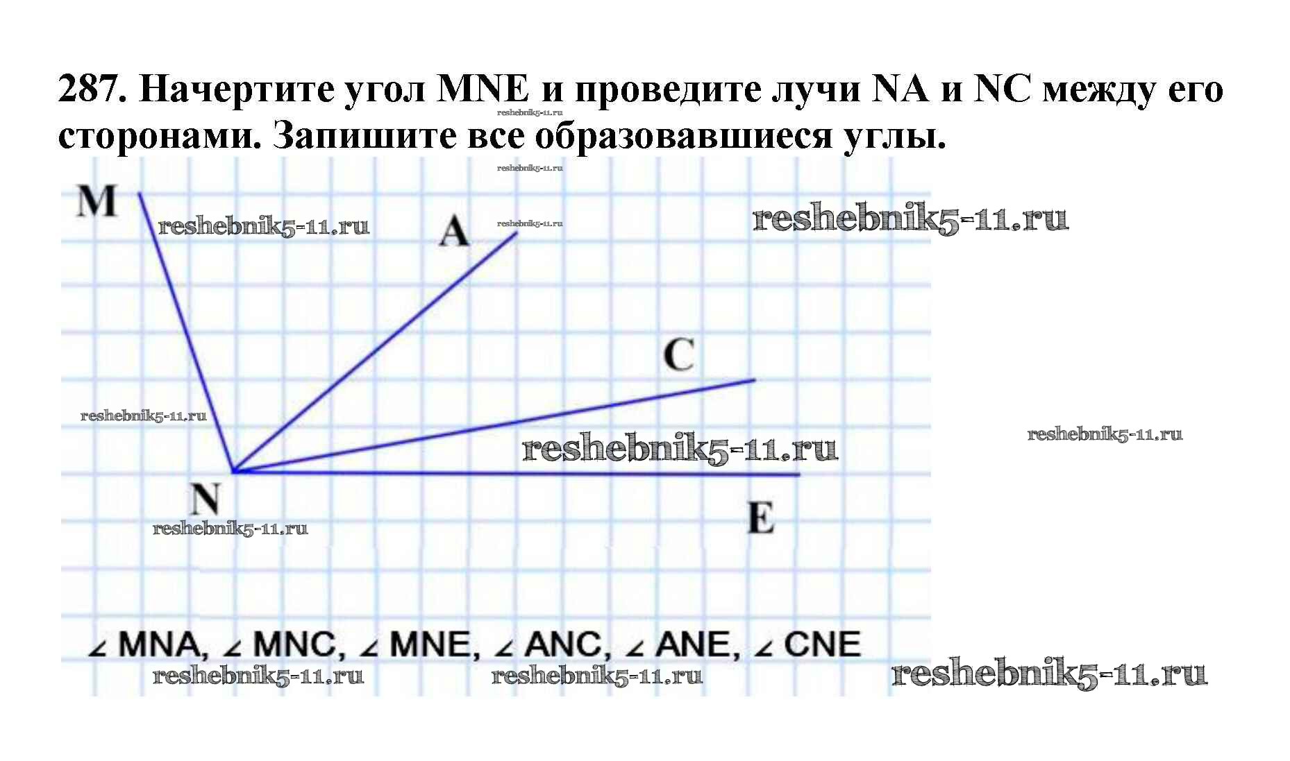 Готовая домашняя работа с ответами по Математике за 5 класс Мерзляк, Полонский, Якир Учебник Алгоритм успеха Вентана-граф 2016 ФГОС - §11. Угол. Обозначение углов 287