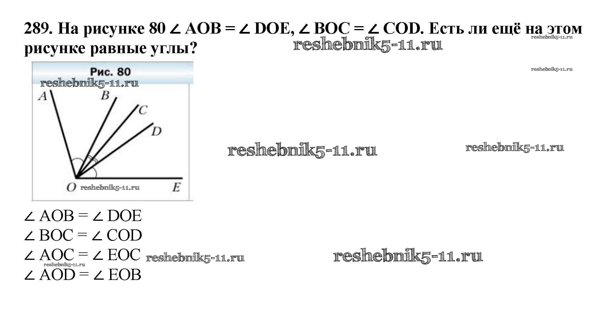 Готовая домашняя работа с ответами по Математике за 5 класс Мерзляк, Полонский, Якир Учебник Алгоритм успеха Вентана-граф 2016 ФГОС - §11. Угол. Обозначение углов 289