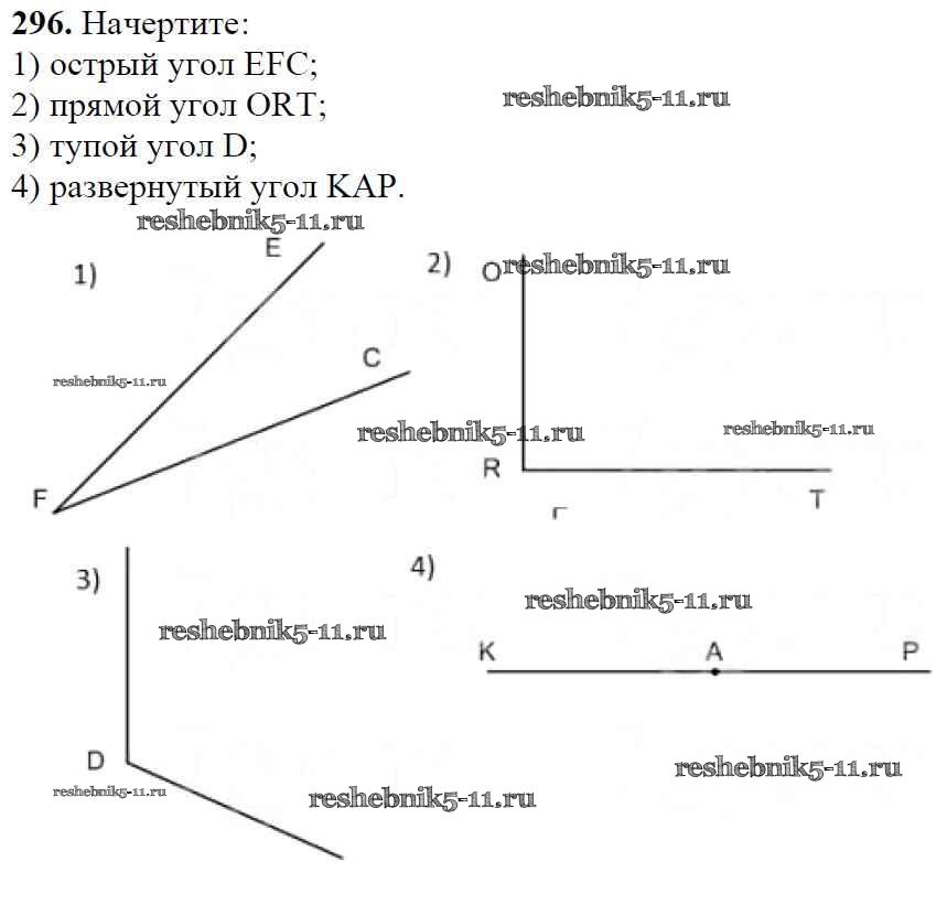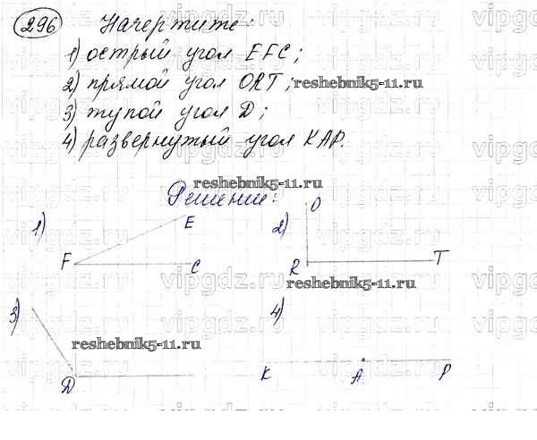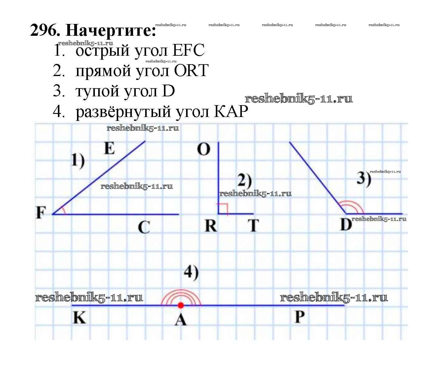 Готовая домашняя работа с ответами по Математике за 5 класс Мерзляк, Полонский, Якир Учебник Алгоритм успеха Вентана-граф 2016 ФГОС - §12. Виды углов. Измерение углов 296