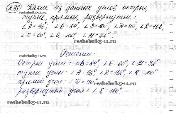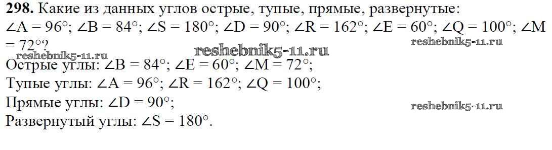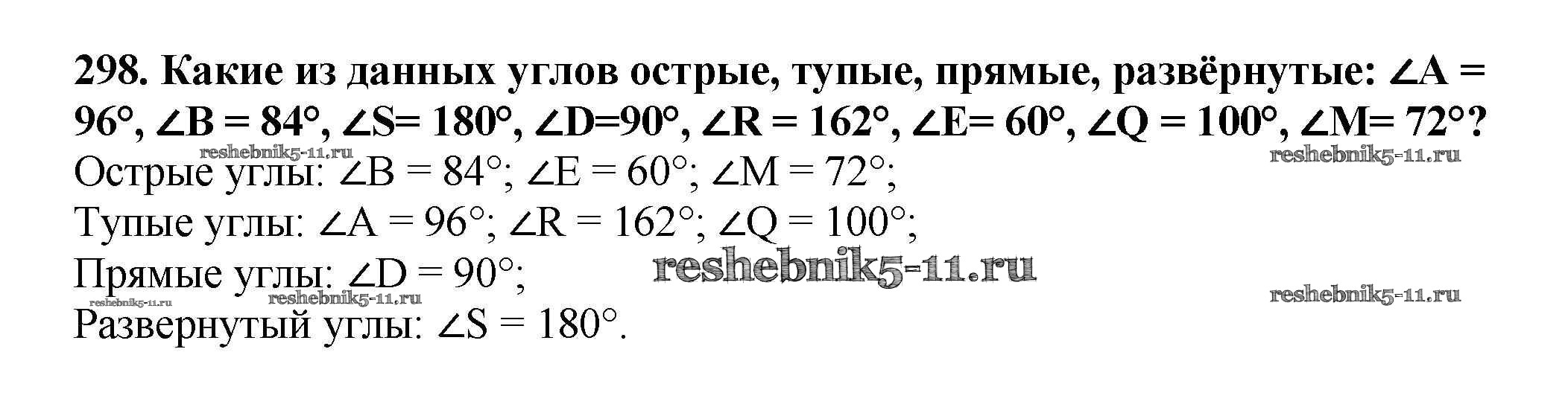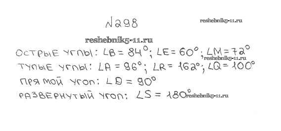 Готовая домашняя работа с ответами по Математике за 5 класс Мерзляк, Полонский, Якир Учебник Алгоритм успеха Вентана-граф 2016 ФГОС - §12. Виды углов. Измерение углов 298