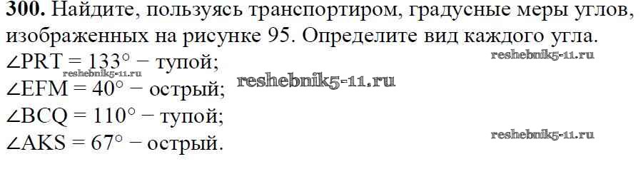 Готовая домашняя работа с ответами по Математике за 5 класс Мерзляк, Полонский, Якир Учебник Алгоритм успеха Вентана-граф 2016 ФГОС - §12. Виды углов. Измерение углов 300
