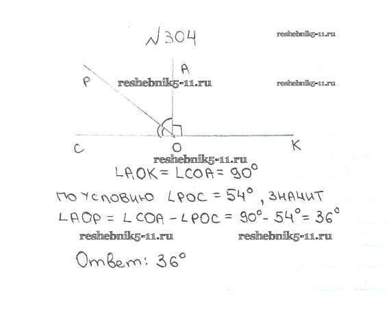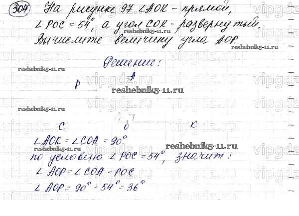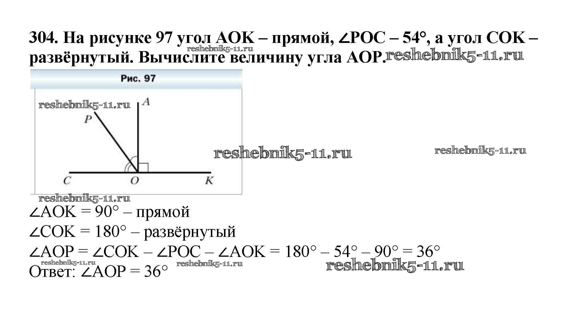 Готовая домашняя работа с ответами по Математике за 5 класс Мерзляк, Полонский, Якир Учебник Алгоритм успеха Вентана-граф 2016 ФГОС - §12. Виды углов. Измерение углов 304