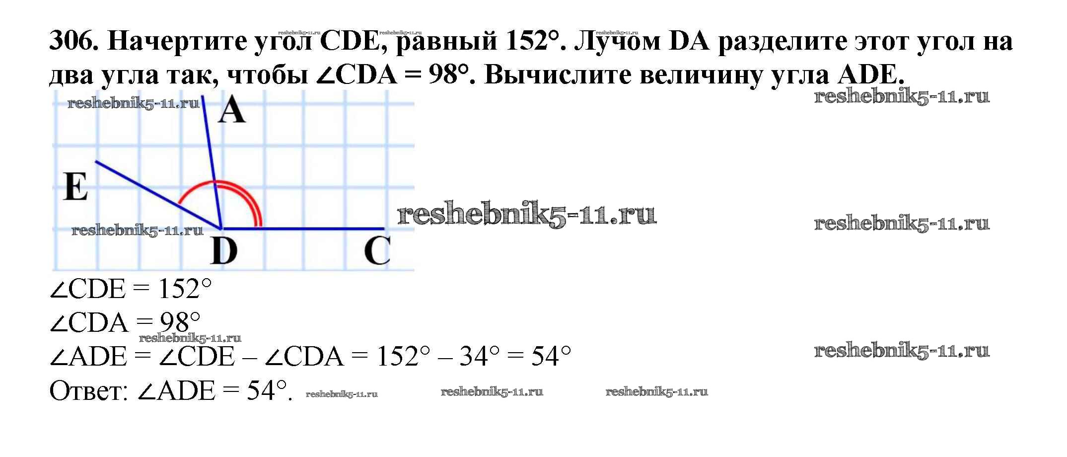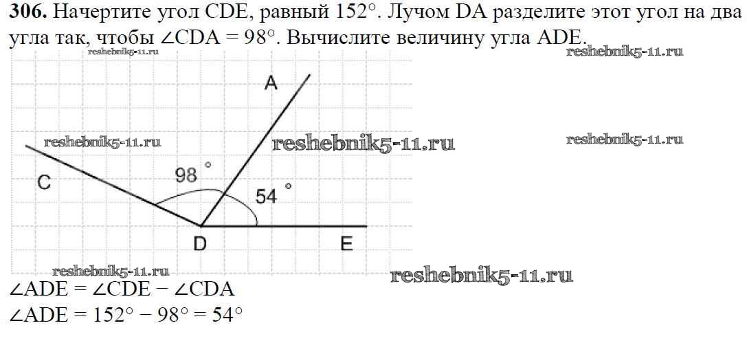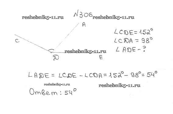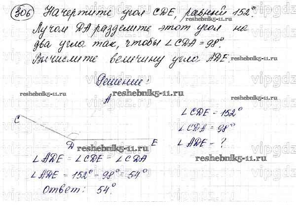 Готовая домашняя работа с ответами по Математике за 5 класс Мерзляк, Полонский, Якир Учебник Алгоритм успеха Вентана-граф 2016 ФГОС - §12. Виды углов. Измерение углов 306