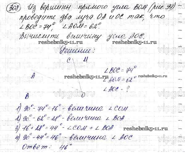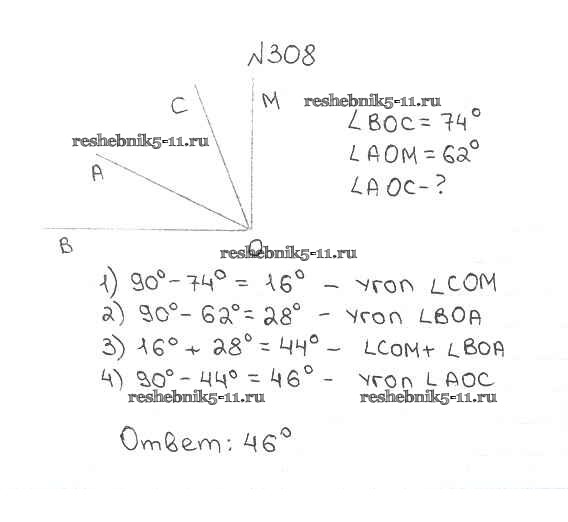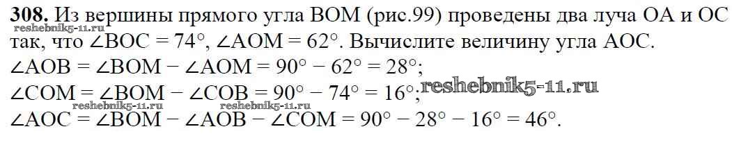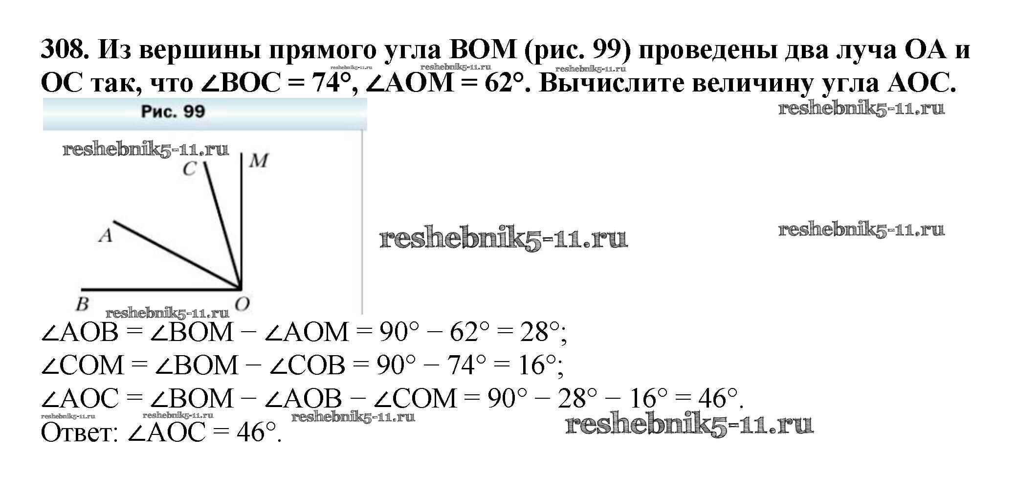 Готовая домашняя работа с ответами по Математике за 5 класс Мерзляк, Полонский, Якир Учебник Алгоритм успеха Вентана-граф 2016 ФГОС - §12. Виды углов. Измерение углов 308