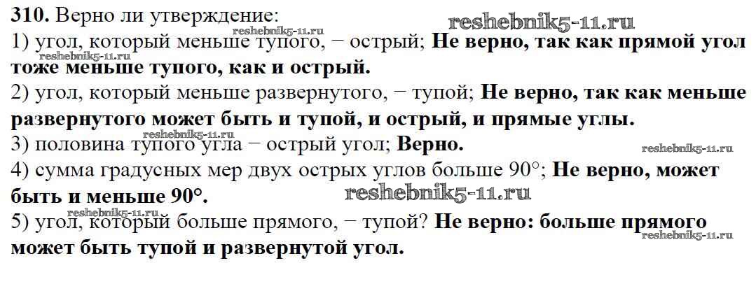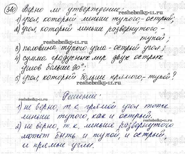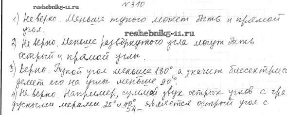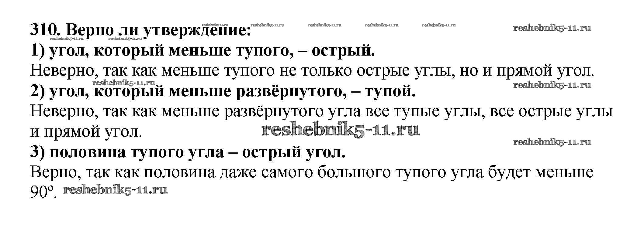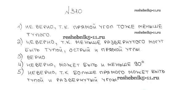 Готовая домашняя работа с ответами по Математике за 5 класс Мерзляк, Полонский, Якир Учебник Алгоритм успеха Вентана-граф 2016 ФГОС - §12. Виды углов. Измерение углов 310