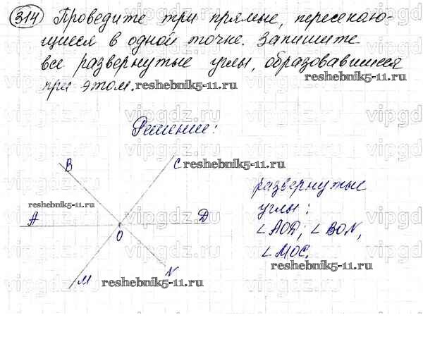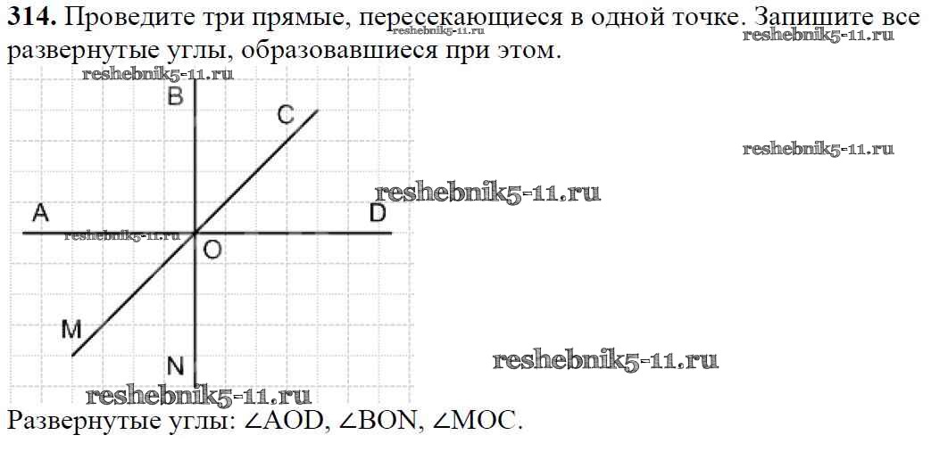 Готовая домашняя работа с ответами по Математике за 5 класс Мерзляк, Полонский, Якир Учебник Алгоритм успеха Вентана-граф 2016 ФГОС - §12. Виды углов. Измерение углов 314