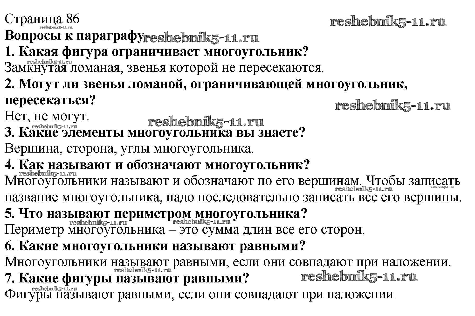 Готовая домашняя работа с ответами по Математике за 5 класс Мерзляк, Полонский, Якир Учебник Алгоритм успеха Вентана-граф 2016 ФГОС - Вопросы (страница 86) страница 86