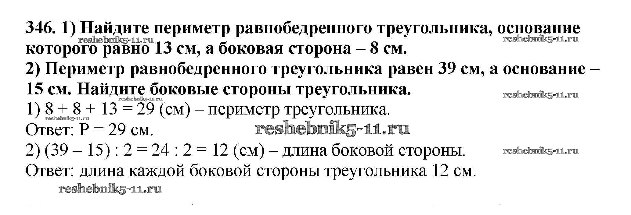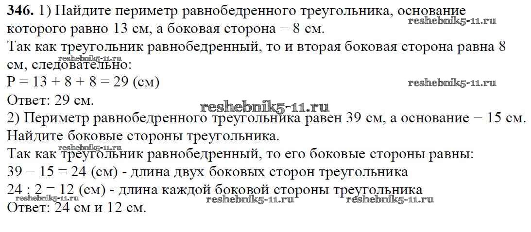 Готовая домашняя работа с ответами по Математике за 5 класс Мерзляк, Полонский, Якир Учебник Алгоритм успеха Вентана-граф 2016 ФГОС - §14. Треугольник и его виды 346