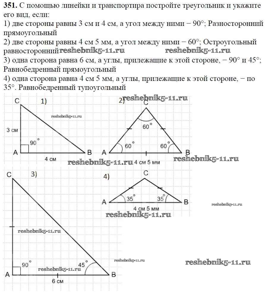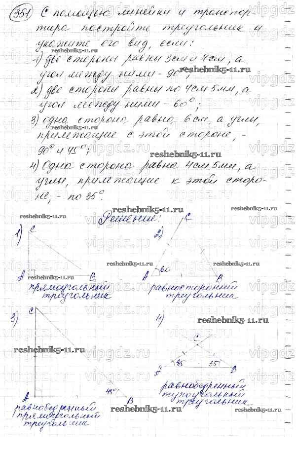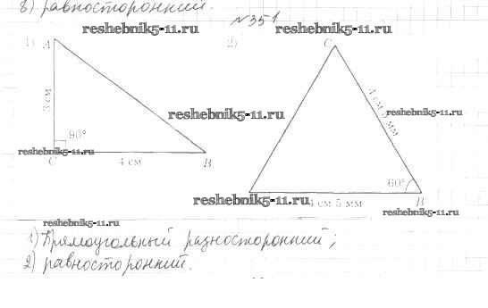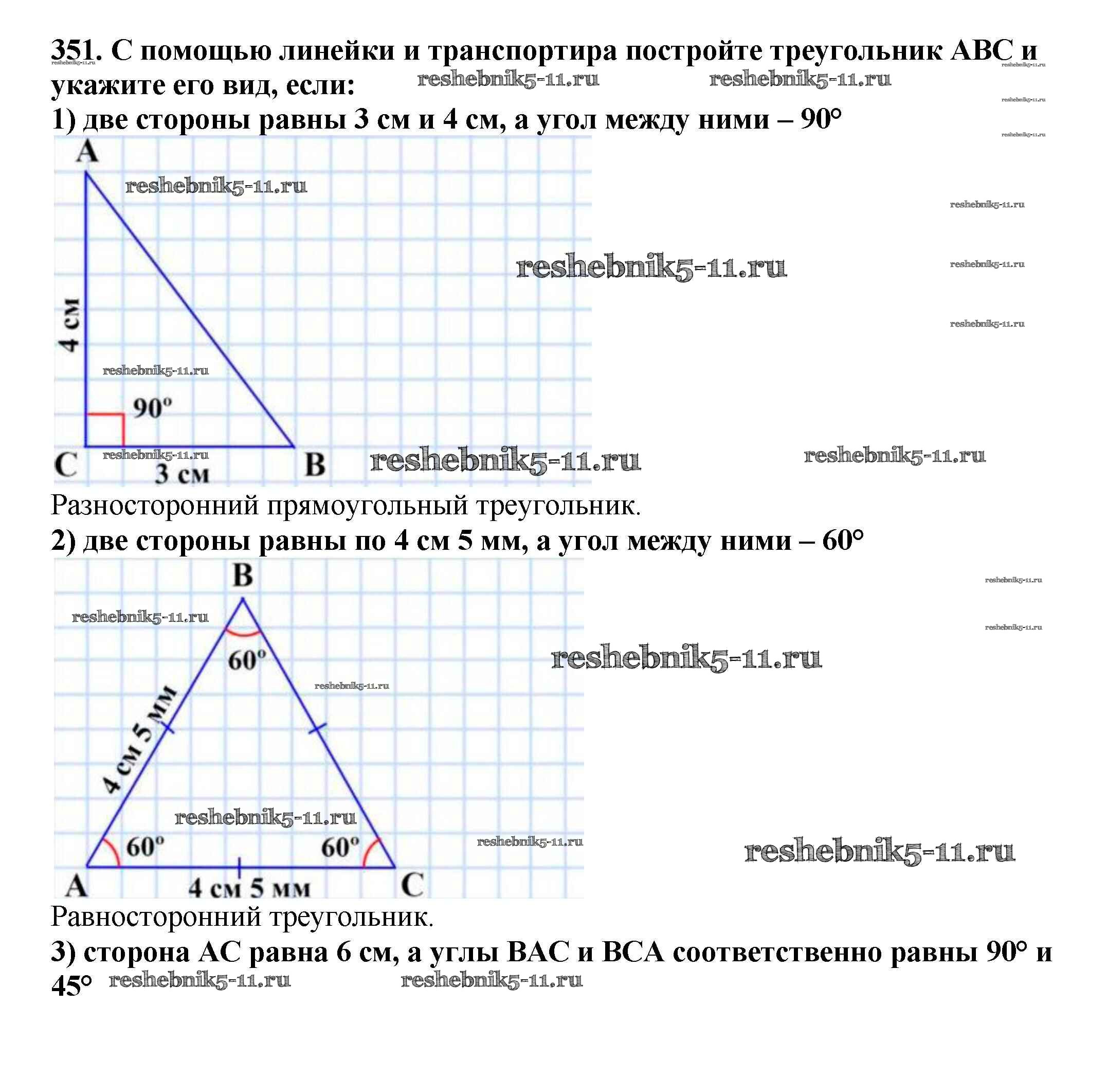 Готовая домашняя работа с ответами по Математике за 5 класс Мерзляк, Полонский, Якир Учебник Алгоритм успеха Вентана-граф 2016 ФГОС - §14. Треугольник и его виды 351