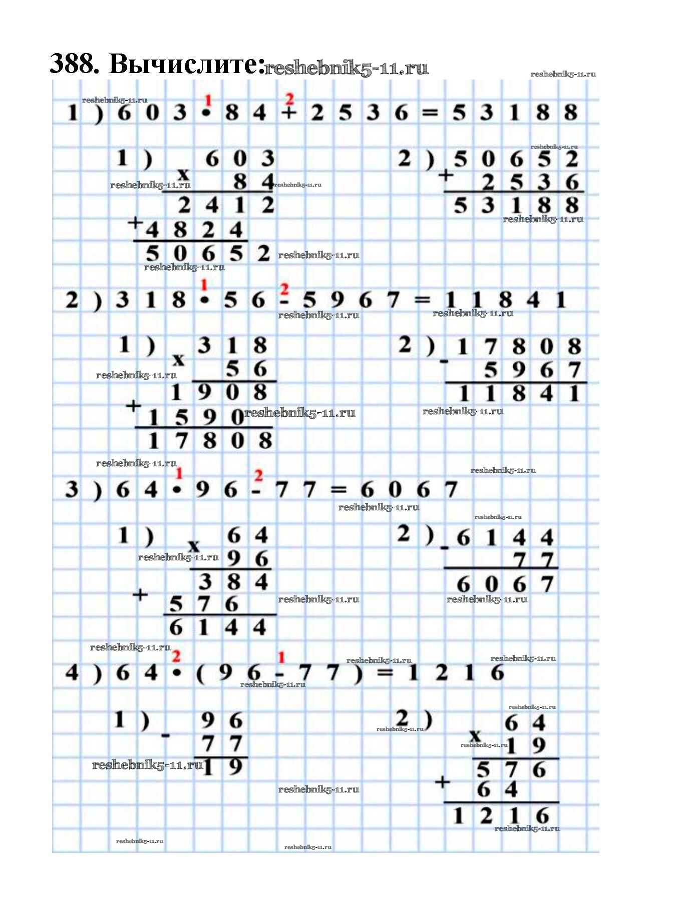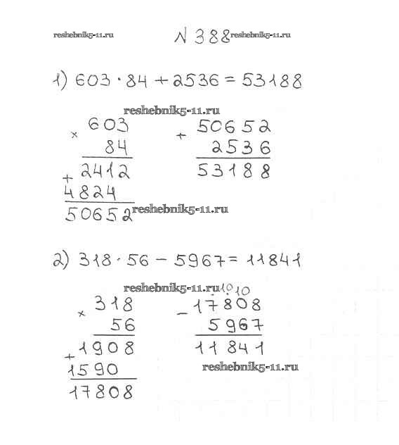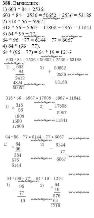 Готовая домашняя работа с ответами по Математике за 5 класс Мерзляк, Полонский, Якир Учебник Алгоритм успеха Вентана-граф 2016 ФГОС - §16. Умножение. Переместительное свойство умножения 388