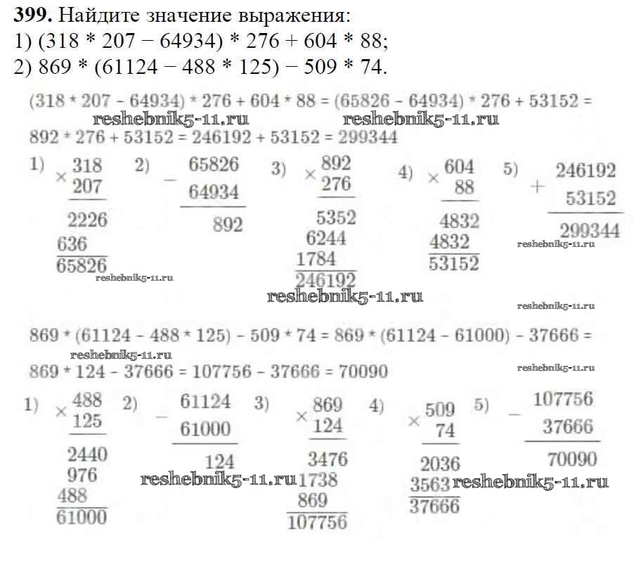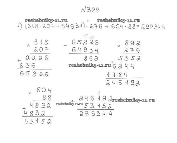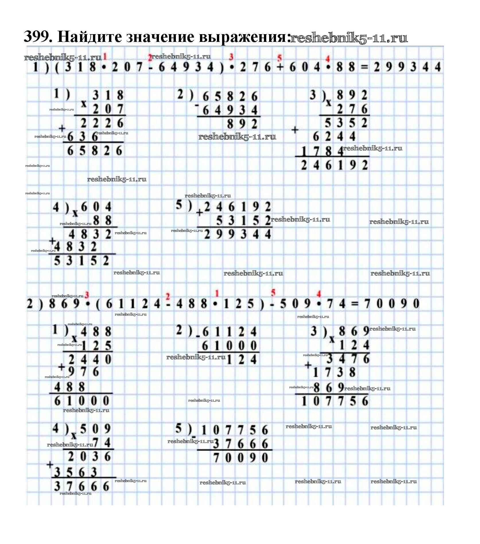 Готовая домашняя работа с ответами по Математике за 5 класс Мерзляк, Полонский, Якир Учебник Алгоритм успеха Вентана-граф 2016 ФГОС - §16. Умножение. Переместительное свойство умножения 399