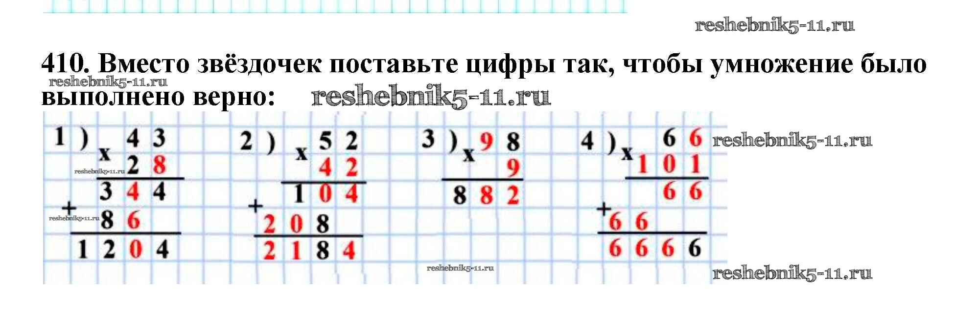 Готовая домашняя работа с ответами по Математике за 5 класс Мерзляк, Полонский, Якир Учебник Алгоритм успеха Вентана-граф 2016 ФГОС - §16. Умножение. Переместительное свойство умножения 410
