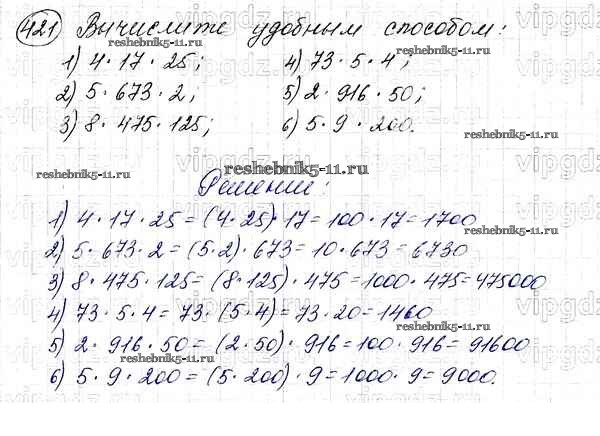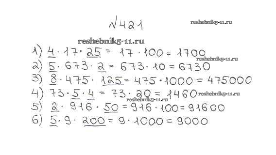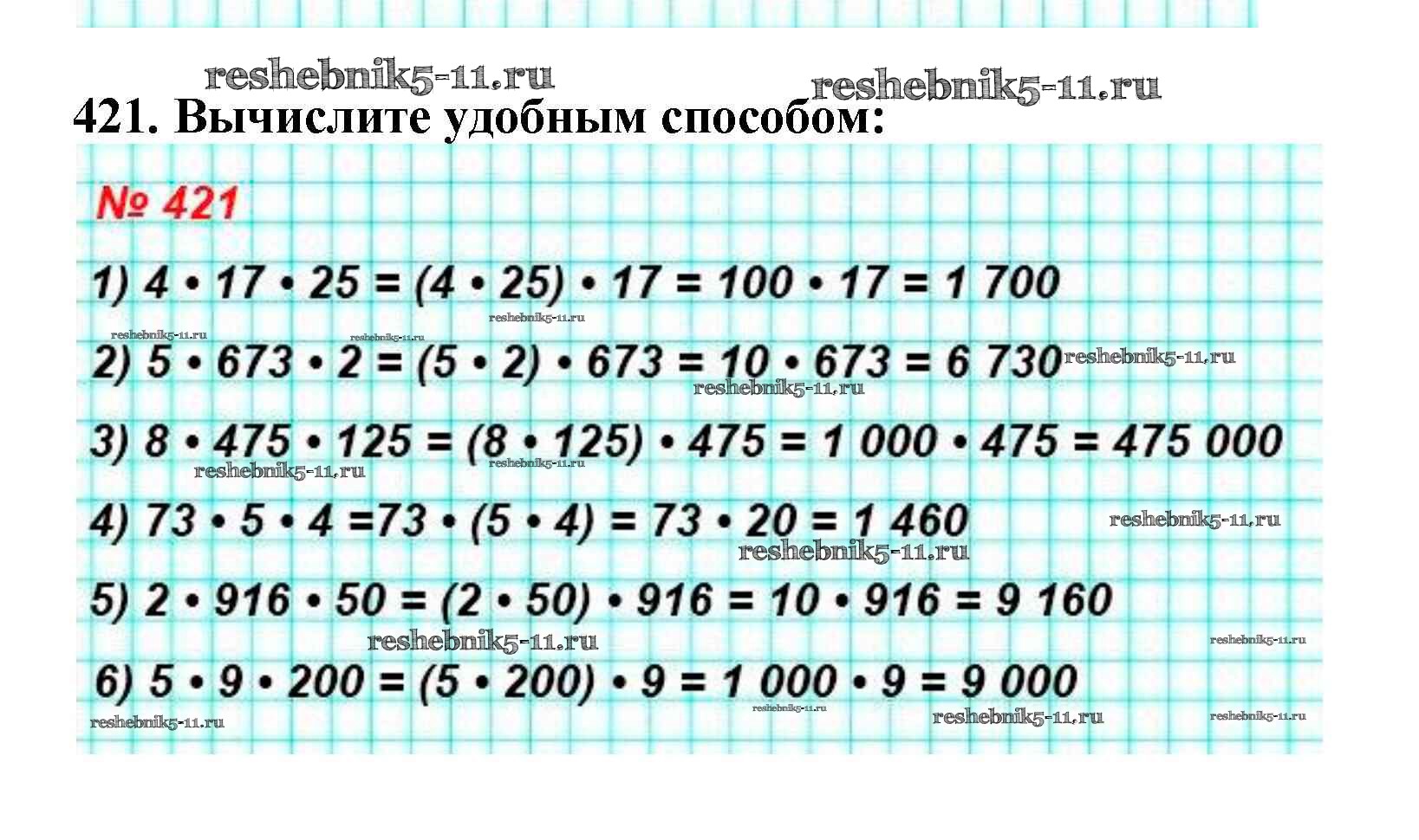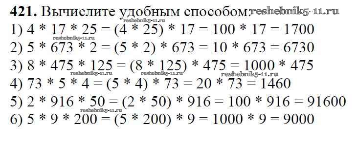 Готовая домашняя работа с ответами по Математике за 5 класс Мерзляк, Полонский, Якир Учебник Алгоритм успеха Вентана-граф 2016 ФГОС - §17. Сочетательное и распределительное свойства умножения 421