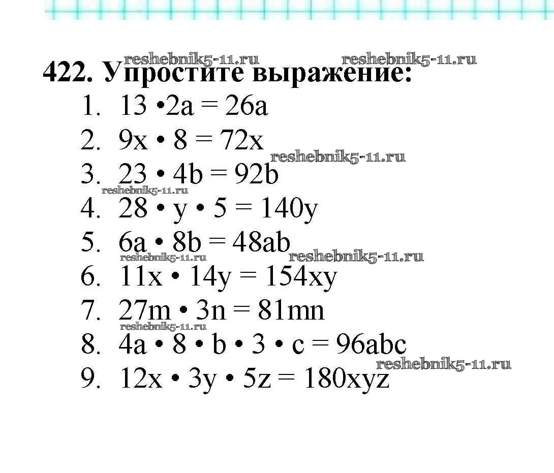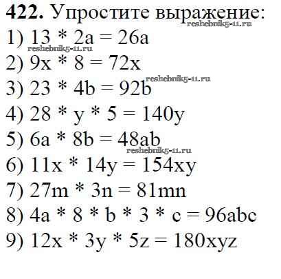 Готовая домашняя работа с ответами по Математике за 5 класс Мерзляк, Полонский, Якир Учебник Алгоритм успеха Вентана-граф 2016 ФГОС - §17. Сочетательное и распределительное свойства умножения 422