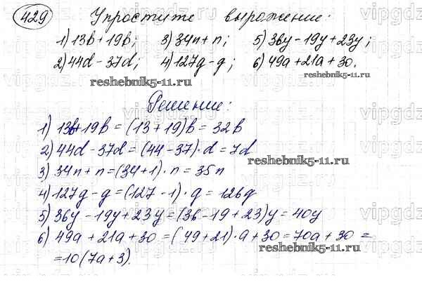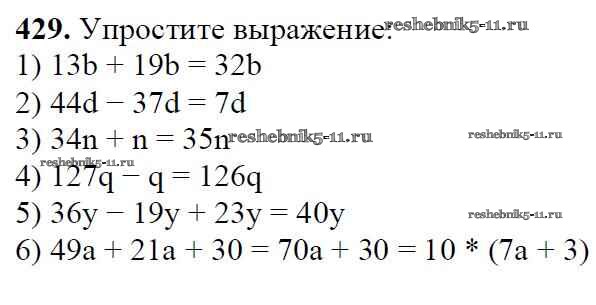 Готовая домашняя работа с ответами по Математике за 5 класс Мерзляк, Полонский, Якир Учебник Алгоритм успеха Вентана-граф 2016 ФГОС - §17. Сочетательное и распределительное свойства умножения 429