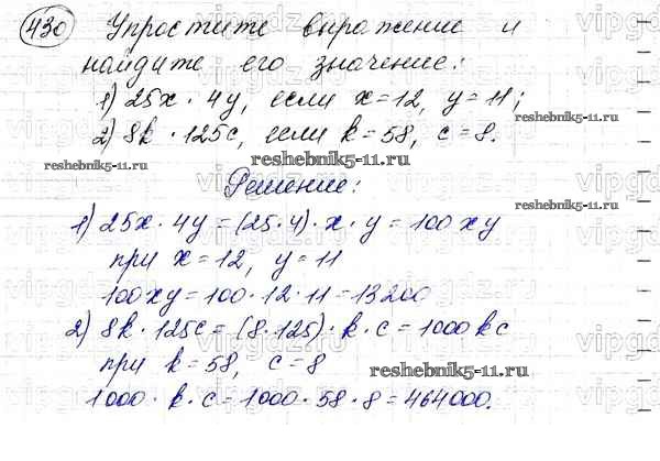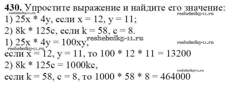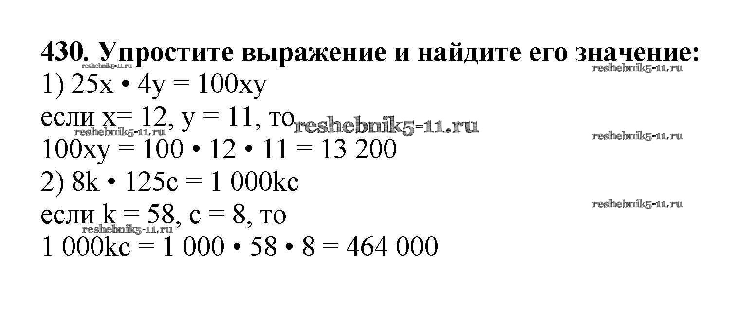 Готовая домашняя работа с ответами по Математике за 5 класс Мерзляк, Полонский, Якир Учебник Алгоритм успеха Вентана-граф 2016 ФГОС - §17. Сочетательное и распределительное свойства умножения 430