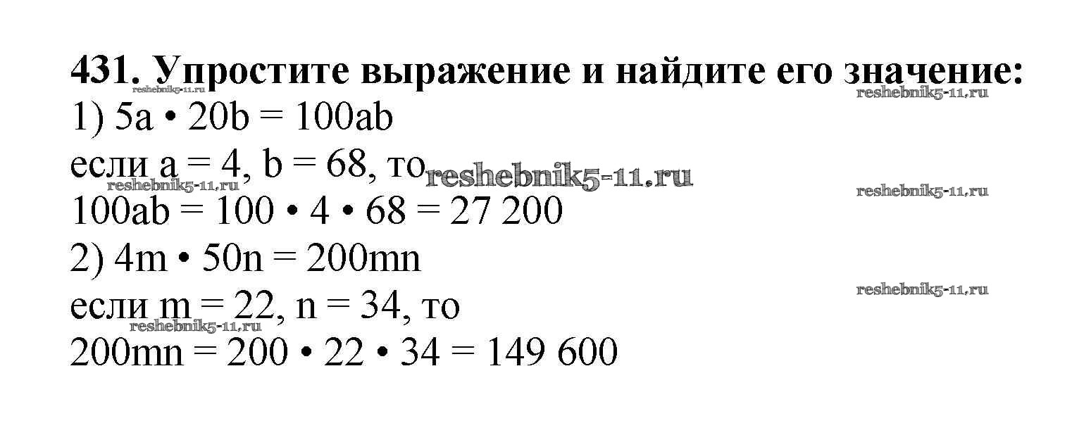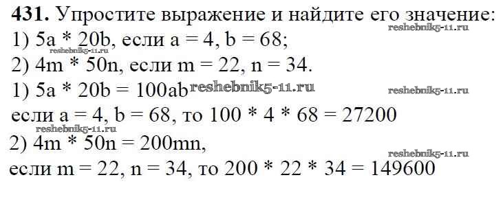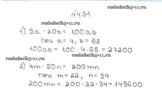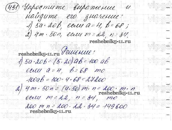 Готовая домашняя работа с ответами по Математике за 5 класс Мерзляк, Полонский, Якир Учебник Алгоритм успеха Вентана-граф 2016 ФГОС - §17. Сочетательное и распределительное свойства умножения 431
