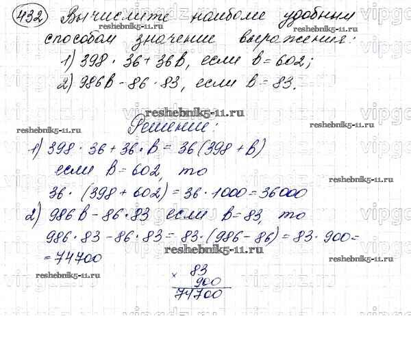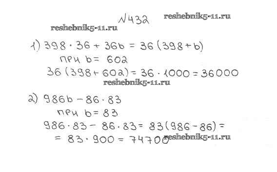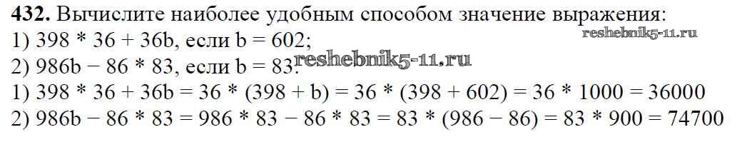 Готовая домашняя работа с ответами по Математике за 5 класс Мерзляк, Полонский, Якир Учебник Алгоритм успеха Вентана-граф 2016 ФГОС - §17. Сочетательное и распределительное свойства умножения 432