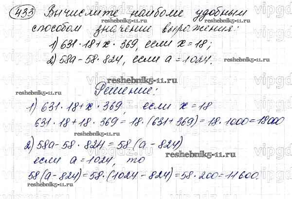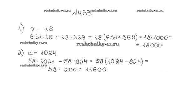 Готовая домашняя работа с ответами по Математике за 5 класс Мерзляк, Полонский, Якир Учебник Алгоритм успеха Вентана-граф 2016 ФГОС - §17. Сочетательное и распределительное свойства умножения 433