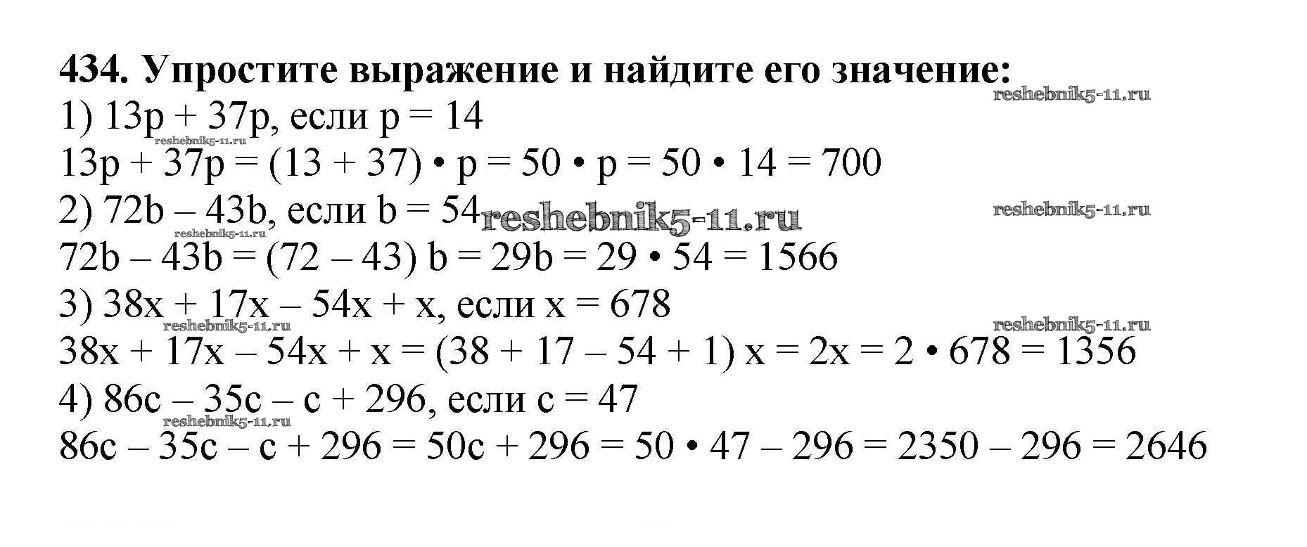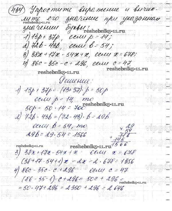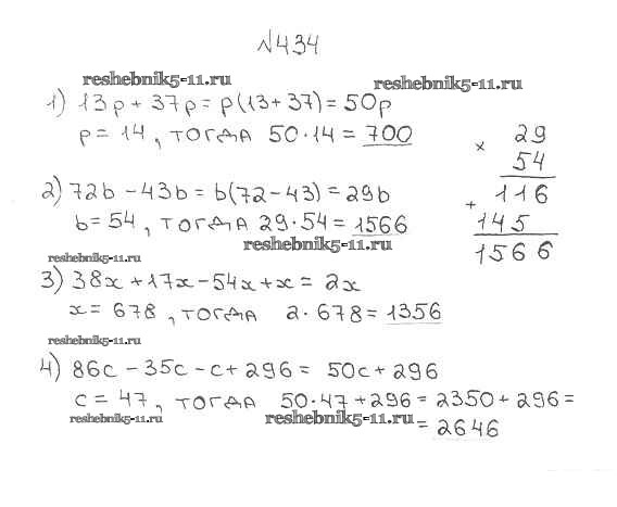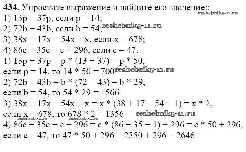 Готовая домашняя работа с ответами по Математике за 5 класс Мерзляк, Полонский, Якир Учебник Алгоритм успеха Вентана-граф 2016 ФГОС - §17. Сочетательное и распределительное свойства умножения 434