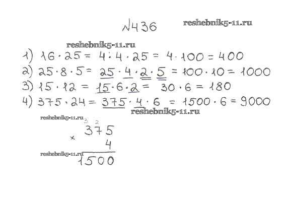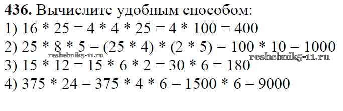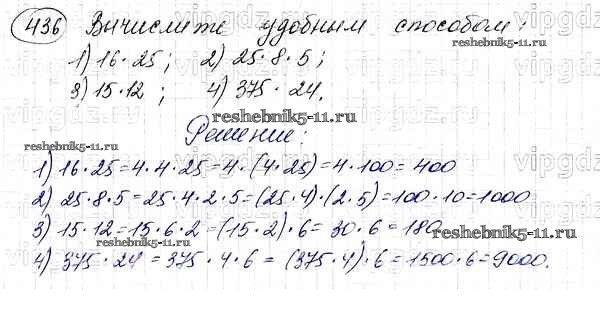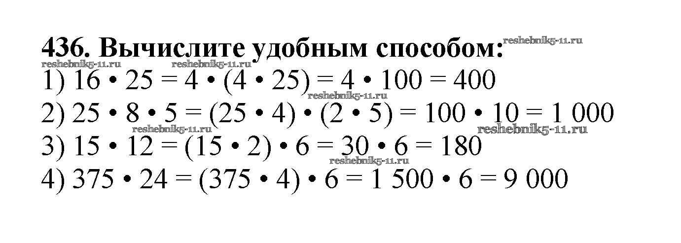 Готовая домашняя работа с ответами по Математике за 5 класс Мерзляк, Полонский, Якир Учебник Алгоритм успеха Вентана-граф 2016 ФГОС - §17. Сочетательное и распределительное свойства умножения 436