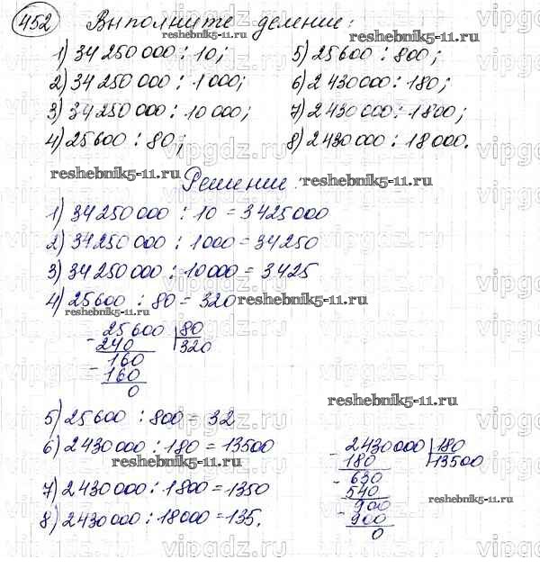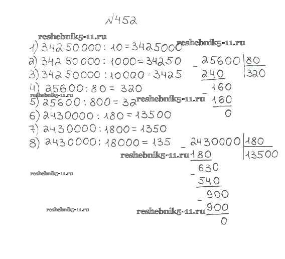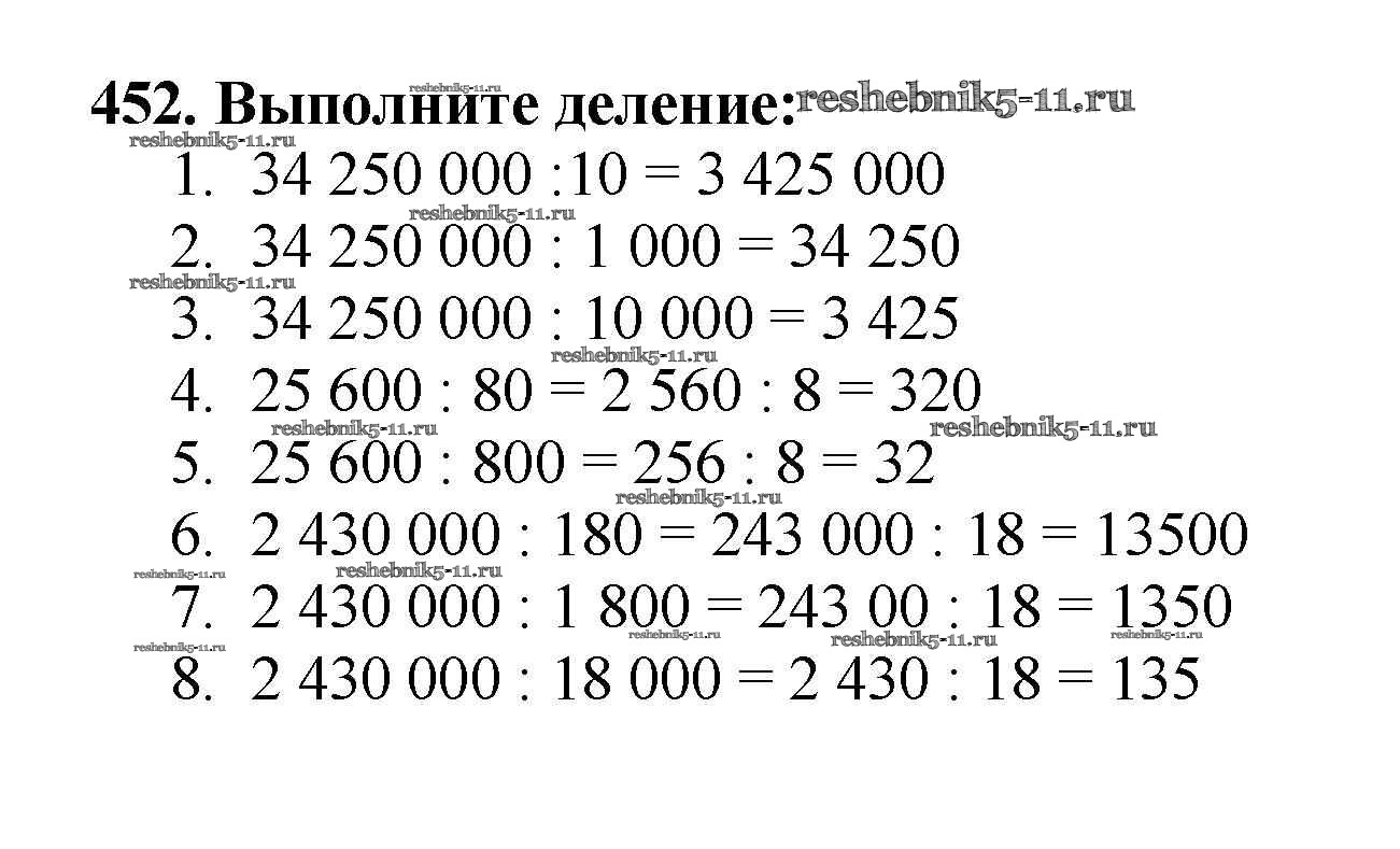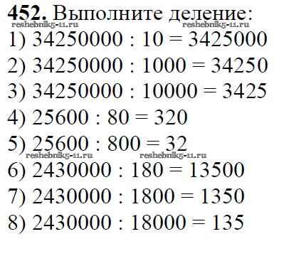 Готовая домашняя работа с ответами по Математике за 5 класс Мерзляк, Полонский, Якир Учебник Алгоритм успеха Вентана-граф 2016 ФГОС - §18. Деление 452