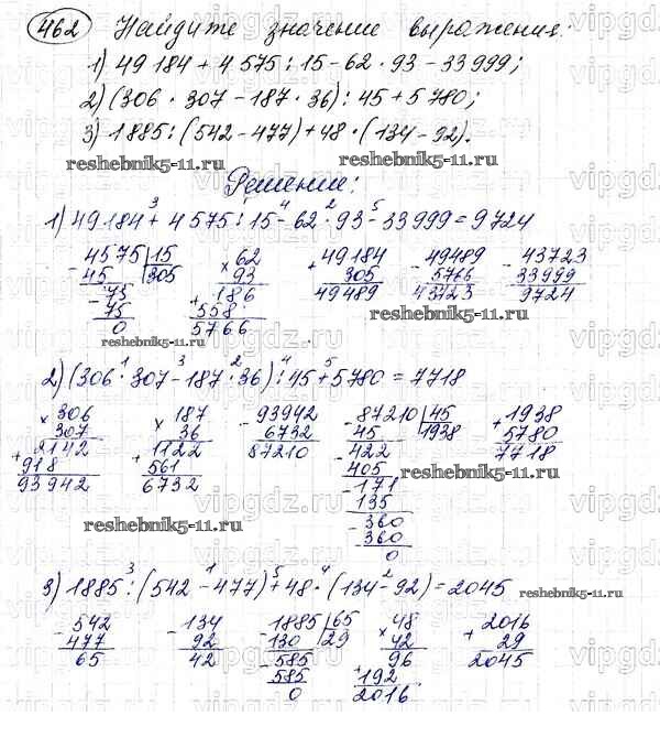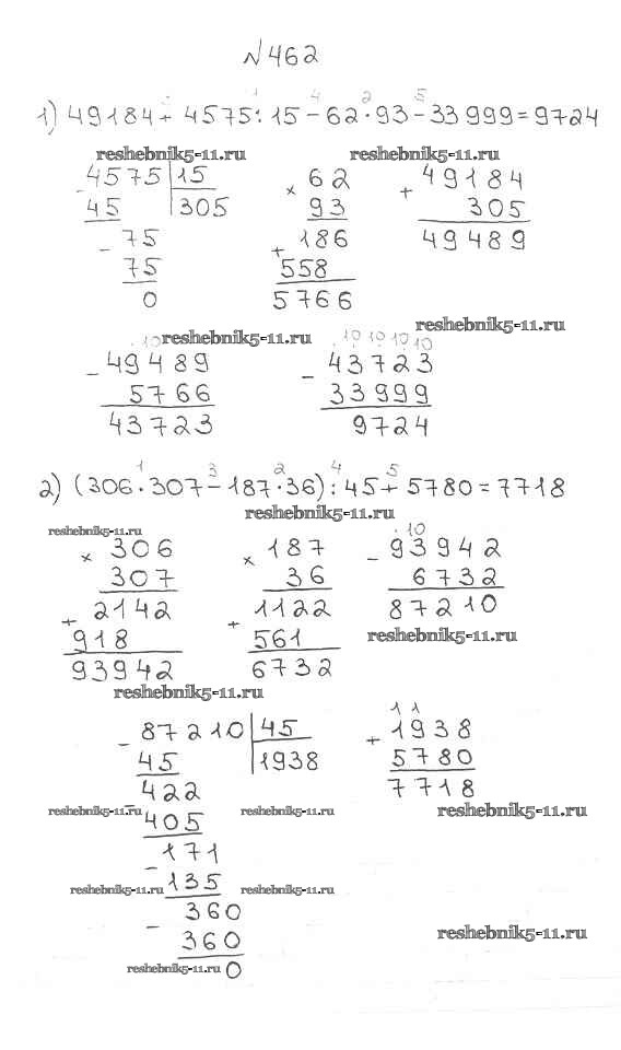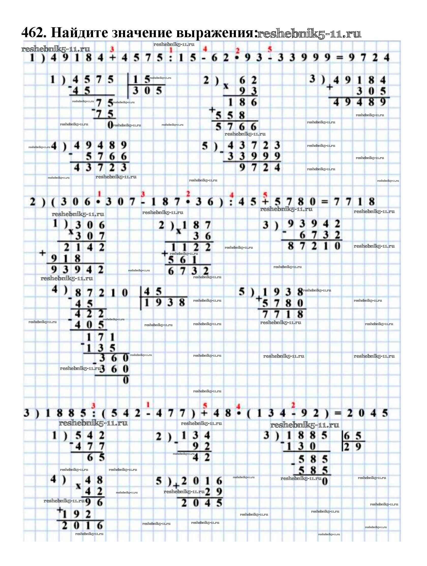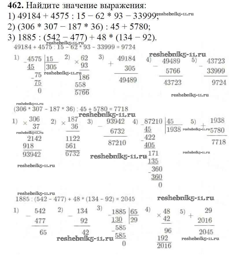 Готовая домашняя работа с ответами по Математике за 5 класс Мерзляк, Полонский, Якир Учебник Алгоритм успеха Вентана-граф 2016 ФГОС - §18. Деление 462