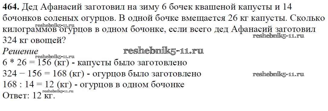 Готовая домашняя работа с ответами по Математике за 5 класс Мерзляк, Полонский, Якир Учебник Алгоритм успеха Вентана-граф 2016 ФГОС - §18. Деление 464