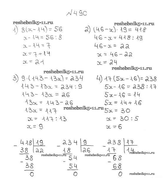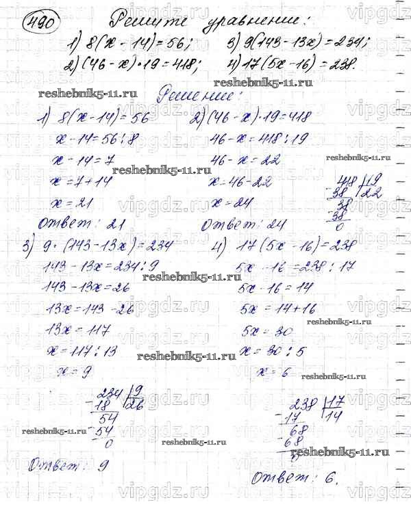 Готовая домашняя работа с ответами по Математике за 5 класс Мерзляк, Полонский, Якир Учебник Алгоритм успеха Вентана-граф 2016 ФГОС - §18. Деление 490